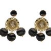 Pendientes con colgante de moneda dorada con apliques negros y tres cuentas negras colgantes