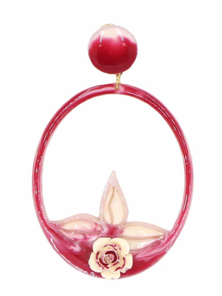 Pendiente de flamenca aro grande esmaltado acuarela color sangría degradado