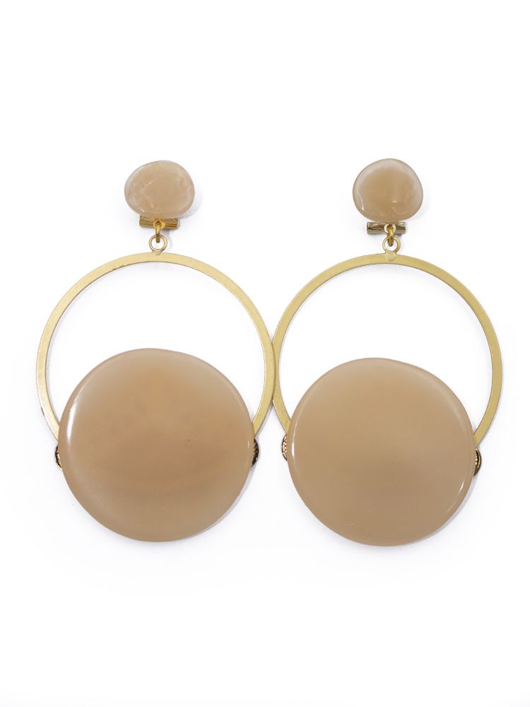 Pendiente de flamenca aro grande piedra cristal color beige