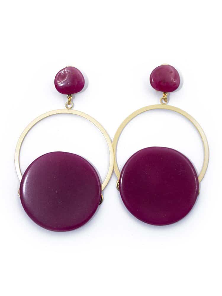Pendiente de flamenca aro grande piedra cristal color buganvilla