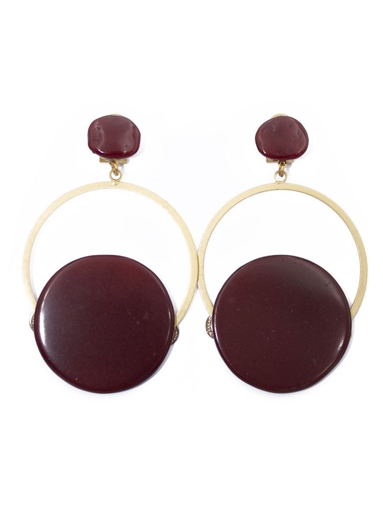 Pendiente de flamenca aro grande piedra cristal color burdeos