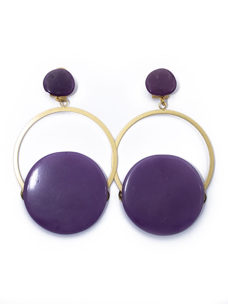 Pendiente de flamenca aro grande piedra cristal color morado. Cierre omega. Medida 55×100 mm (con cabezal). Fabricado artesanalmente en la provincia de Sevilla.