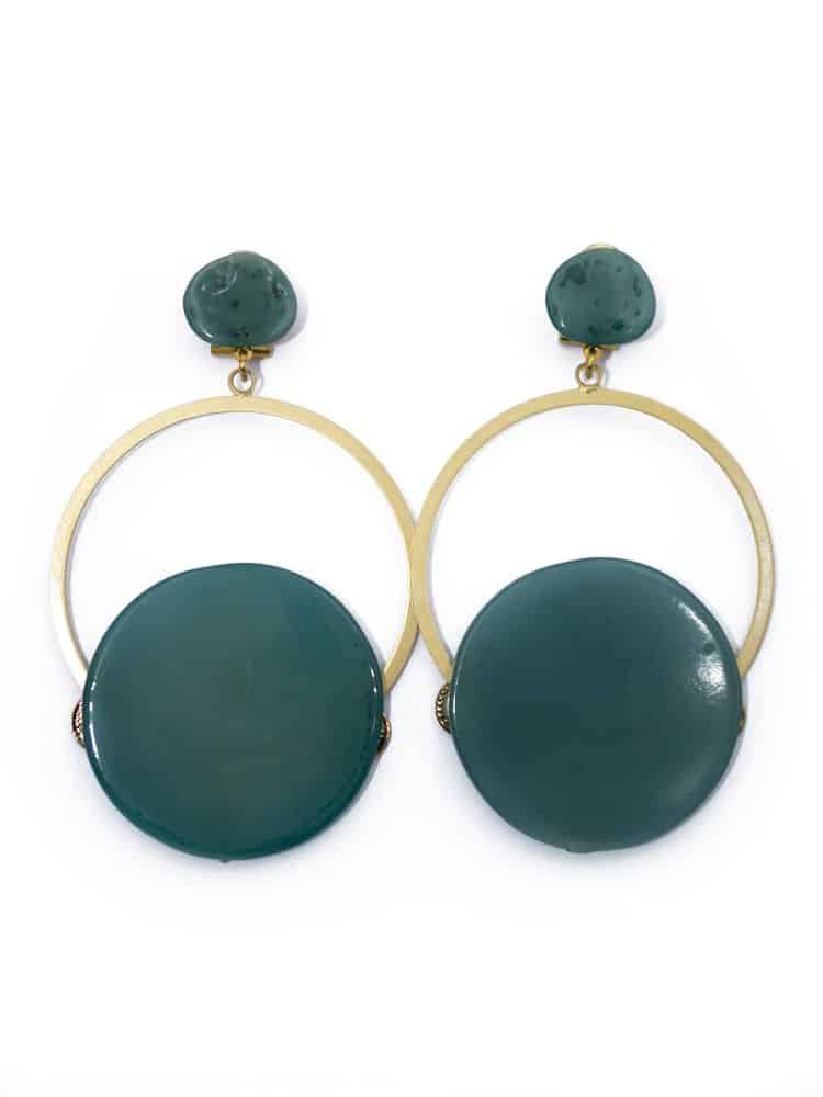 Pendiente de flamenca aro grande piedra cristal color verde esmeralda