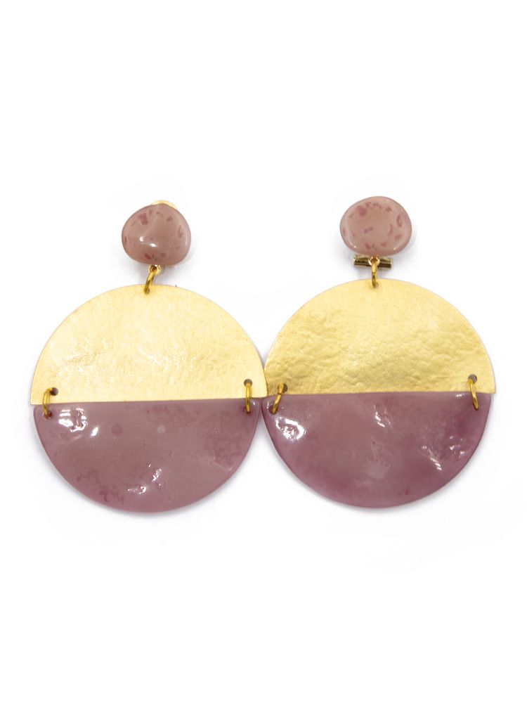 Pendientes de bolas de piedras Ágata multicolor en tonalidad malva con cabezal de nenúfar