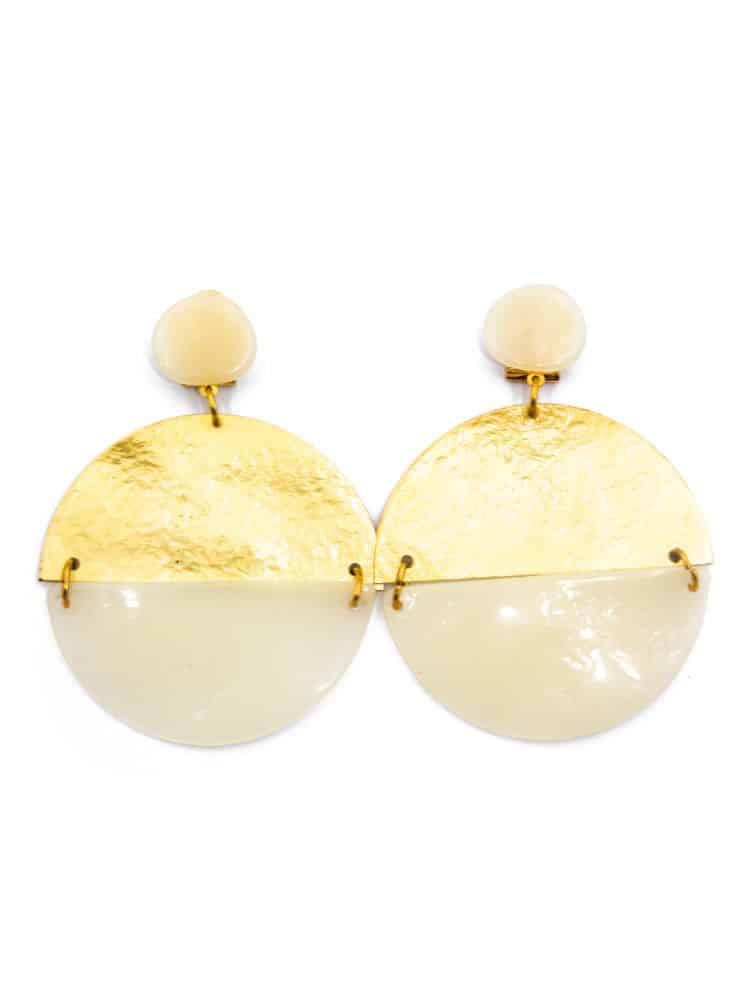 Pendiente de flamenca aro grande piedras cristal color marfil y metal dorado