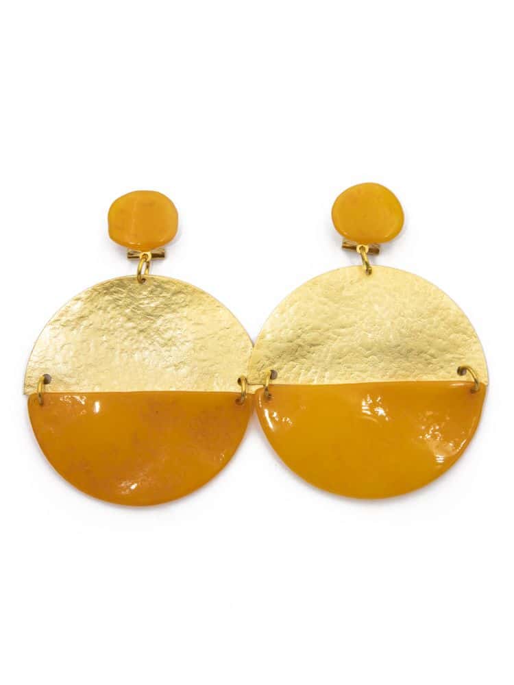 Pendiente de flamenca aro grande piedras cristal color mostaza y metal dorado