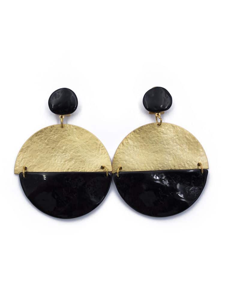Pendiente de flamenca aro grande piedras cristal color negro y metal dorado