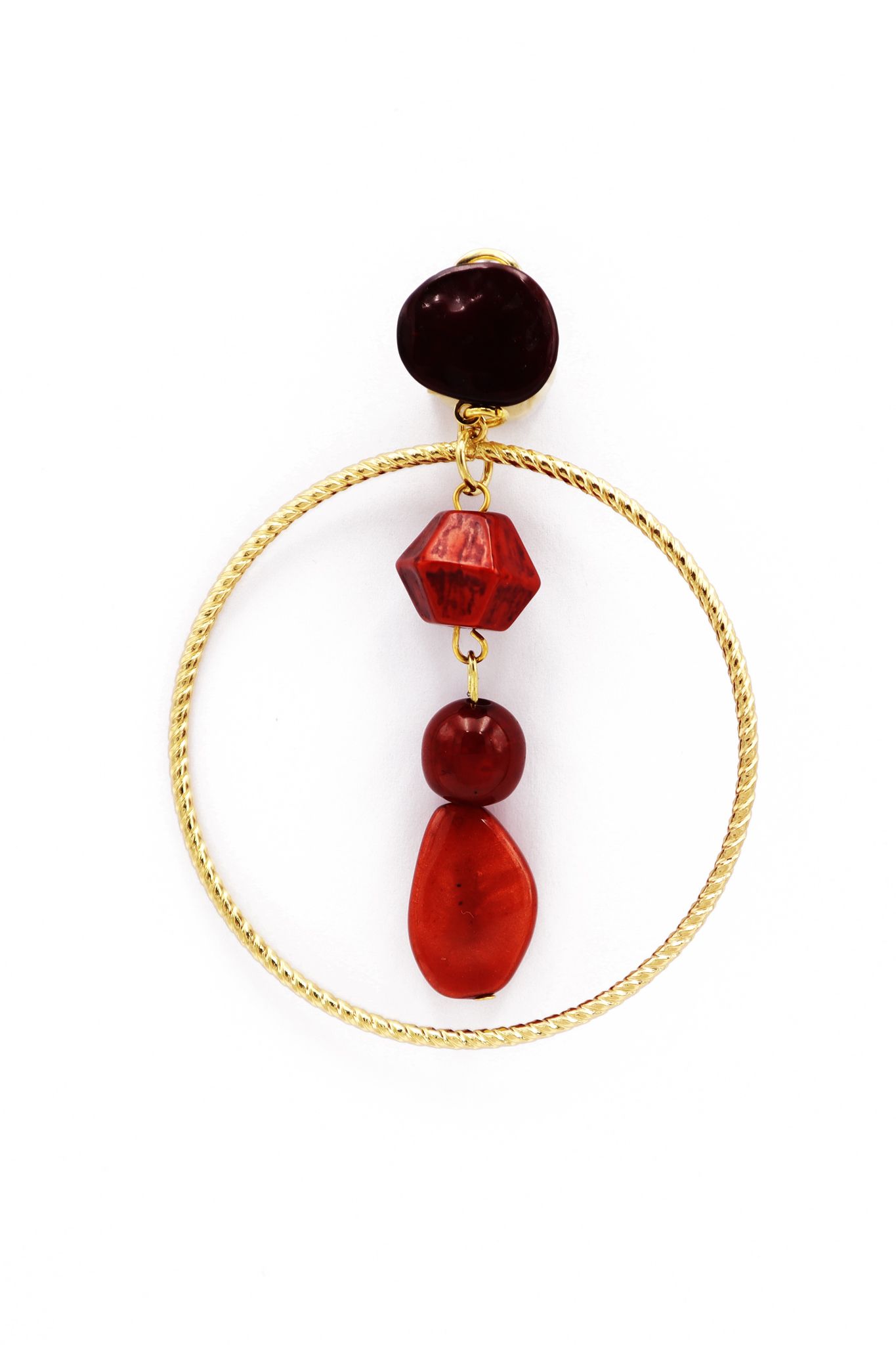 Pendiente de flamenca aro grande piedras nácar color cardenal y rojo