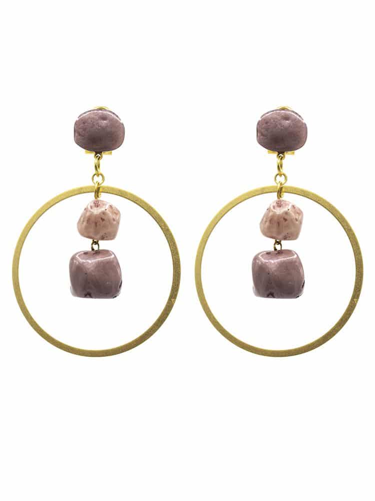 Pendiente de flamenca aro grande piedras nácar color maquillaje oscuro. Cierre omega. Medida 55×55 mm (sin cabezal). Fabricado artesanalmente en la provincia de Sevilla.
