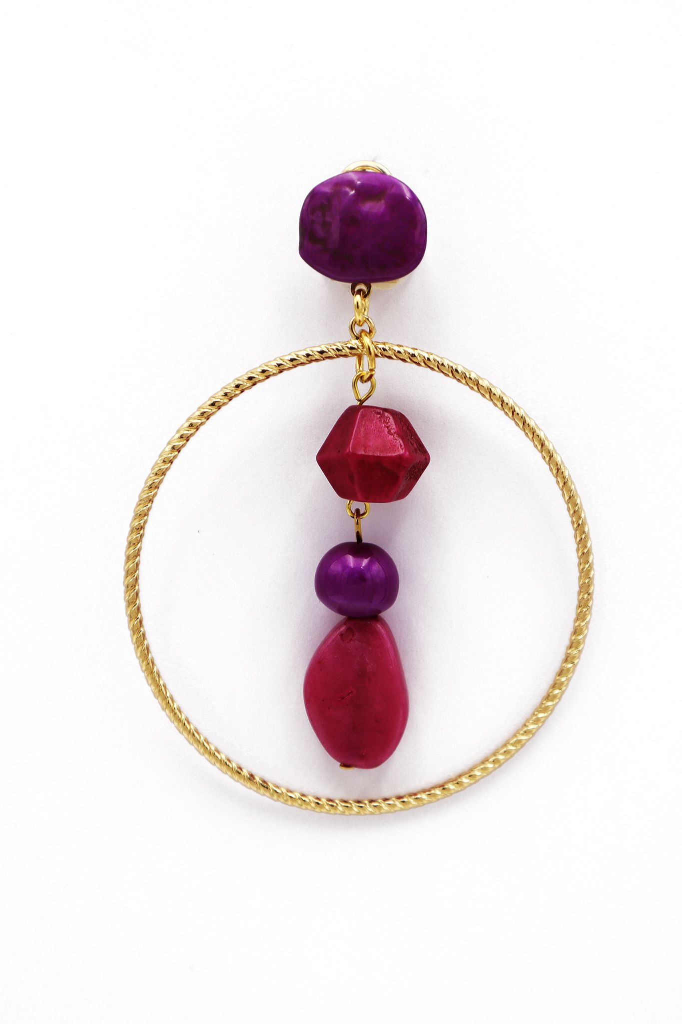 Pendiente de flamenca aro grande piedras nácar color morado y buganvilla