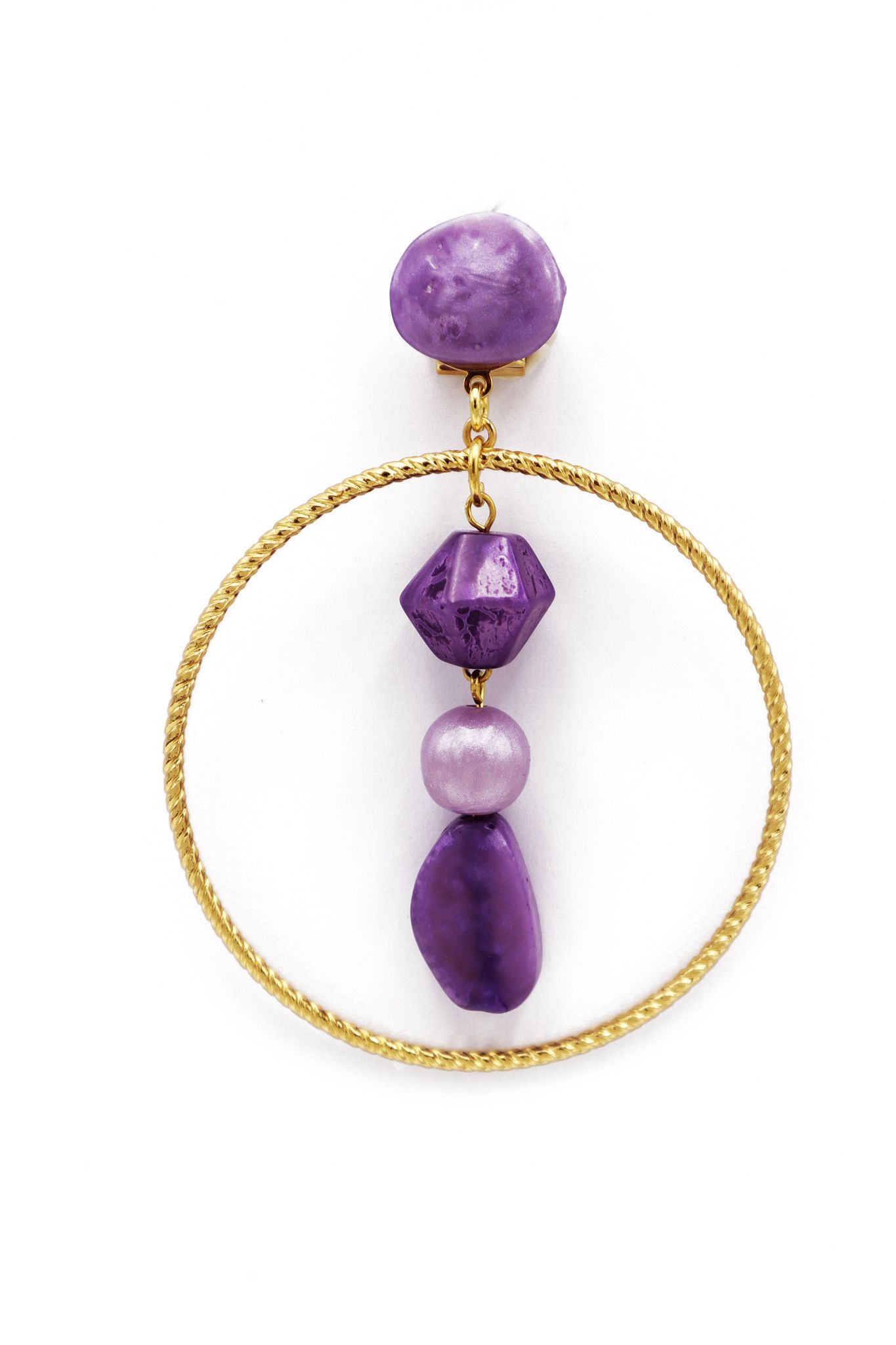 Pendiente de flamenca aro grande piedras nácar color morado y malva