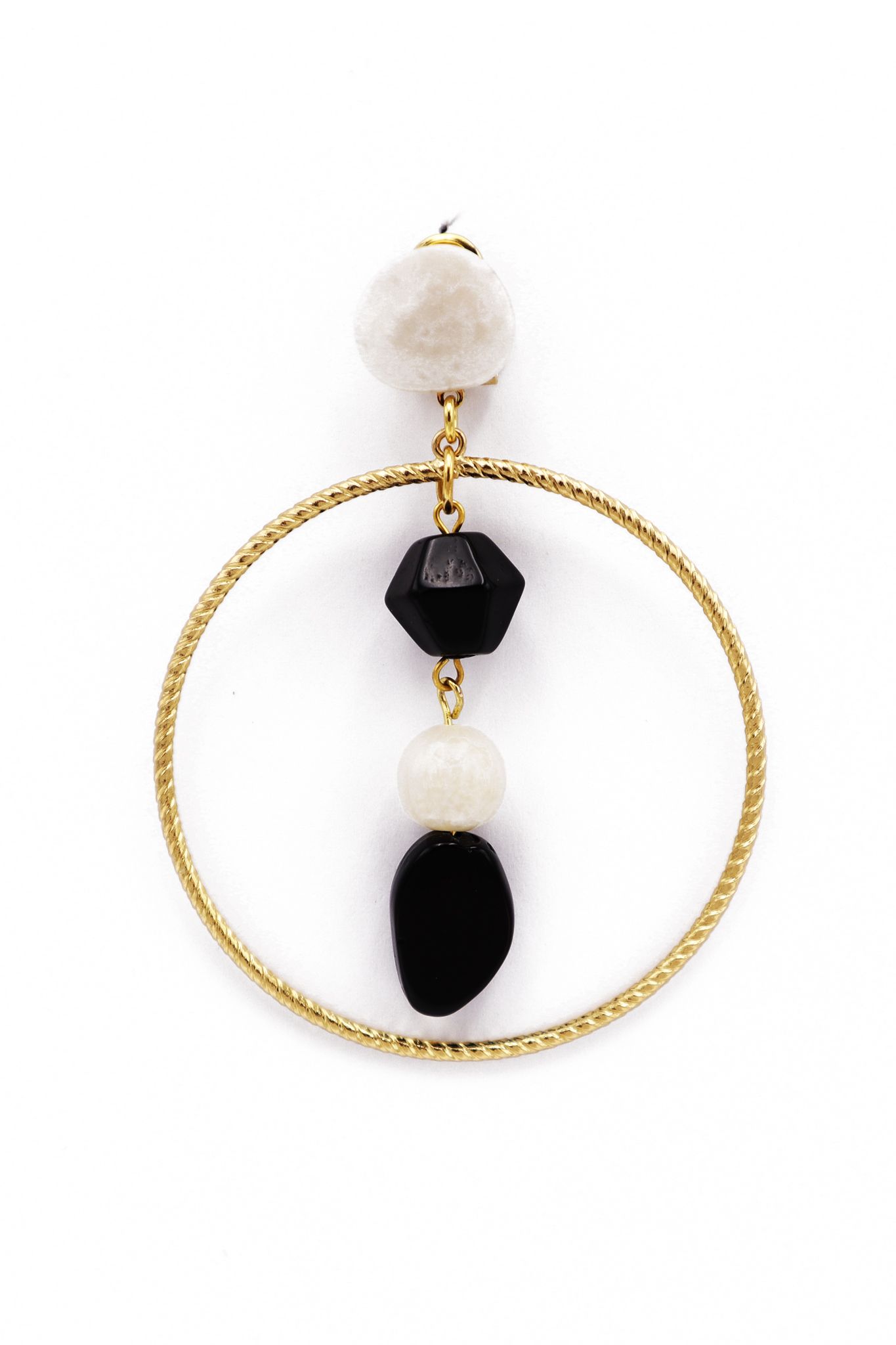 Pendiente de flamenca aro grande piedras nácar color negro y marfil