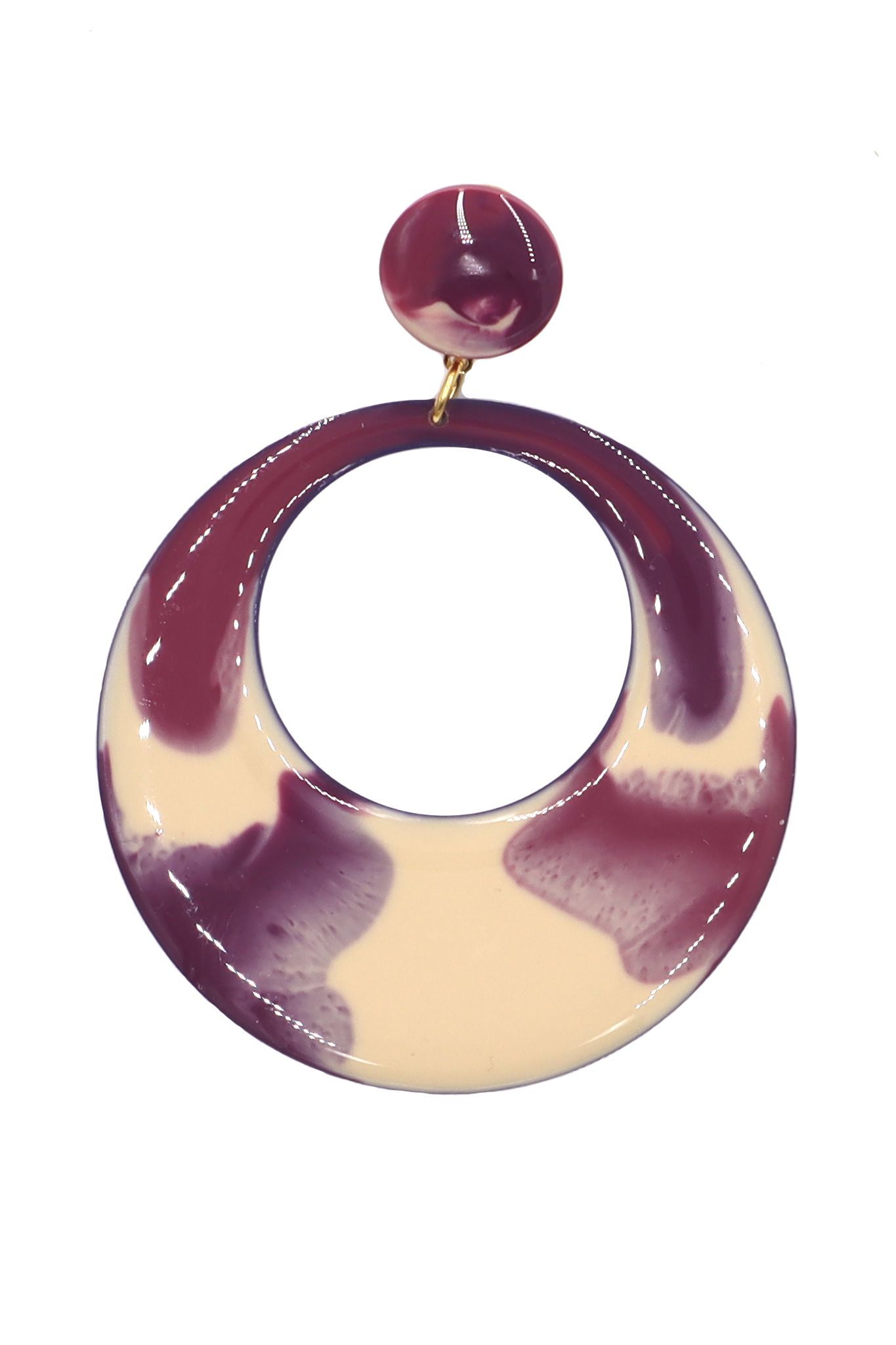Pendiente de flamenca aro mediano esmaltado acuarela color cardenal degradado