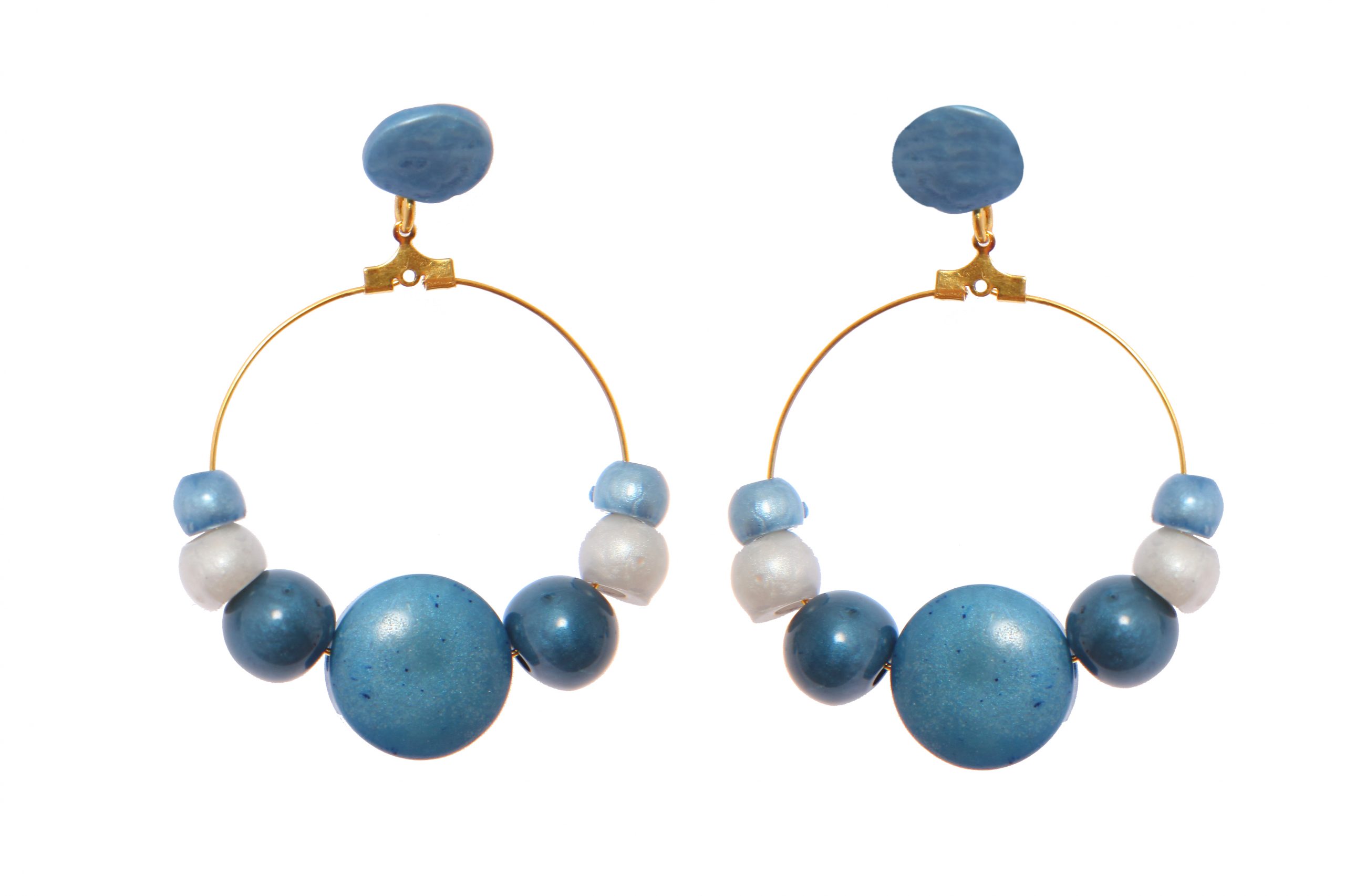 Pendiente de flamenca aro mediano piedras nácar color azul ducado