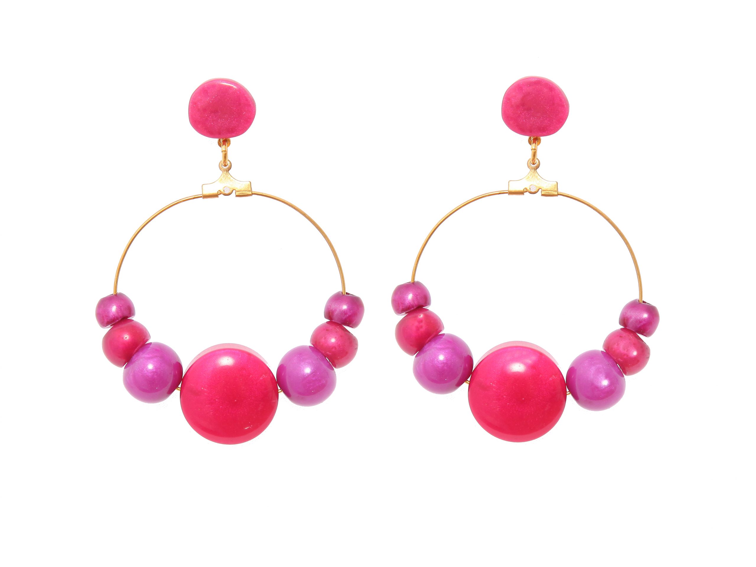 Pendiente de flamenca aro mediano piedras nácar color buganvilla y morado