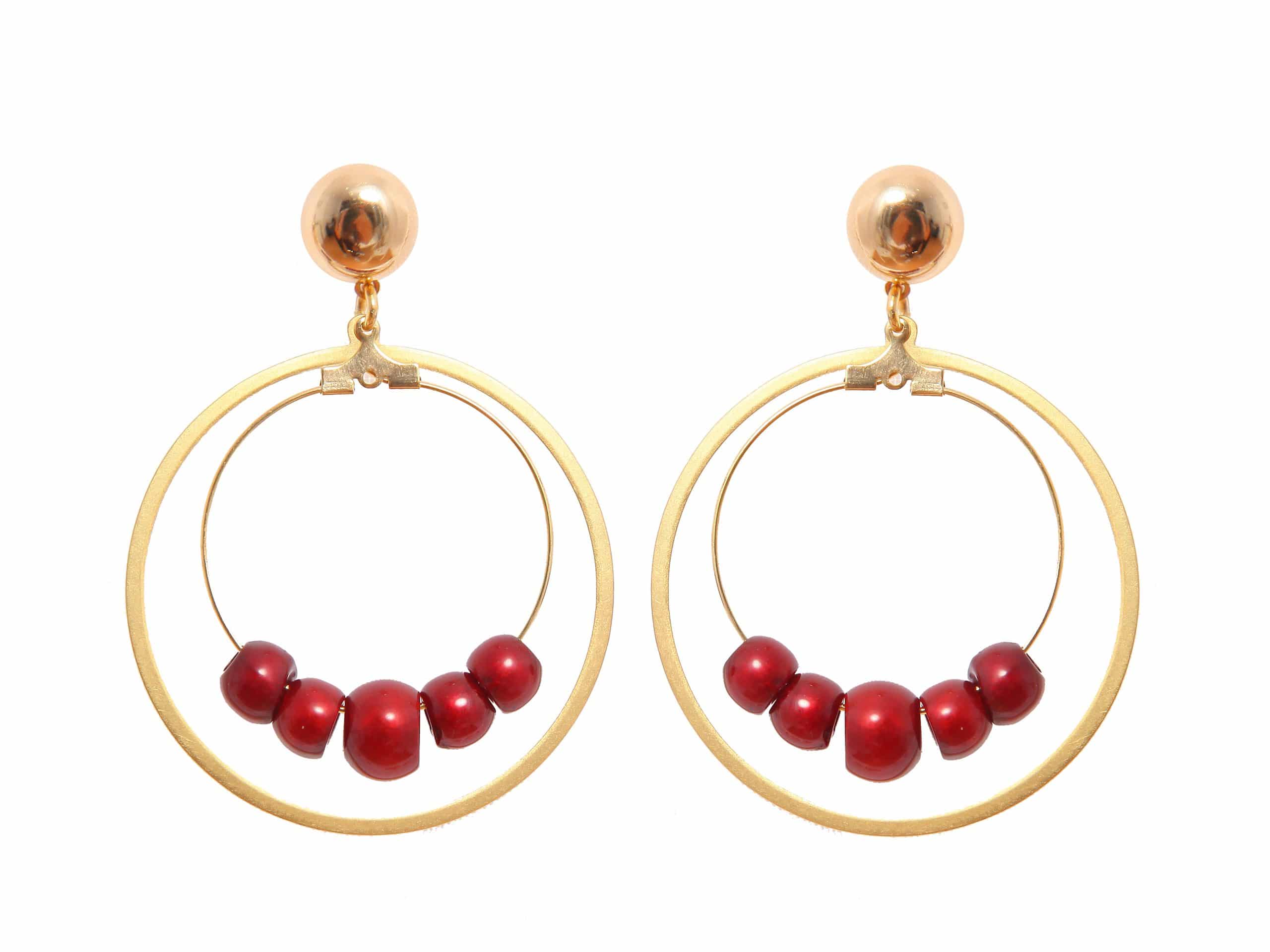 Pendiente de flamenca aro mediano piedras nácar color burdeos. Cierre a presión. Medida 45×68 mm (con cabezal). Fabricado artesanalmente en la provincia de Sevilla.