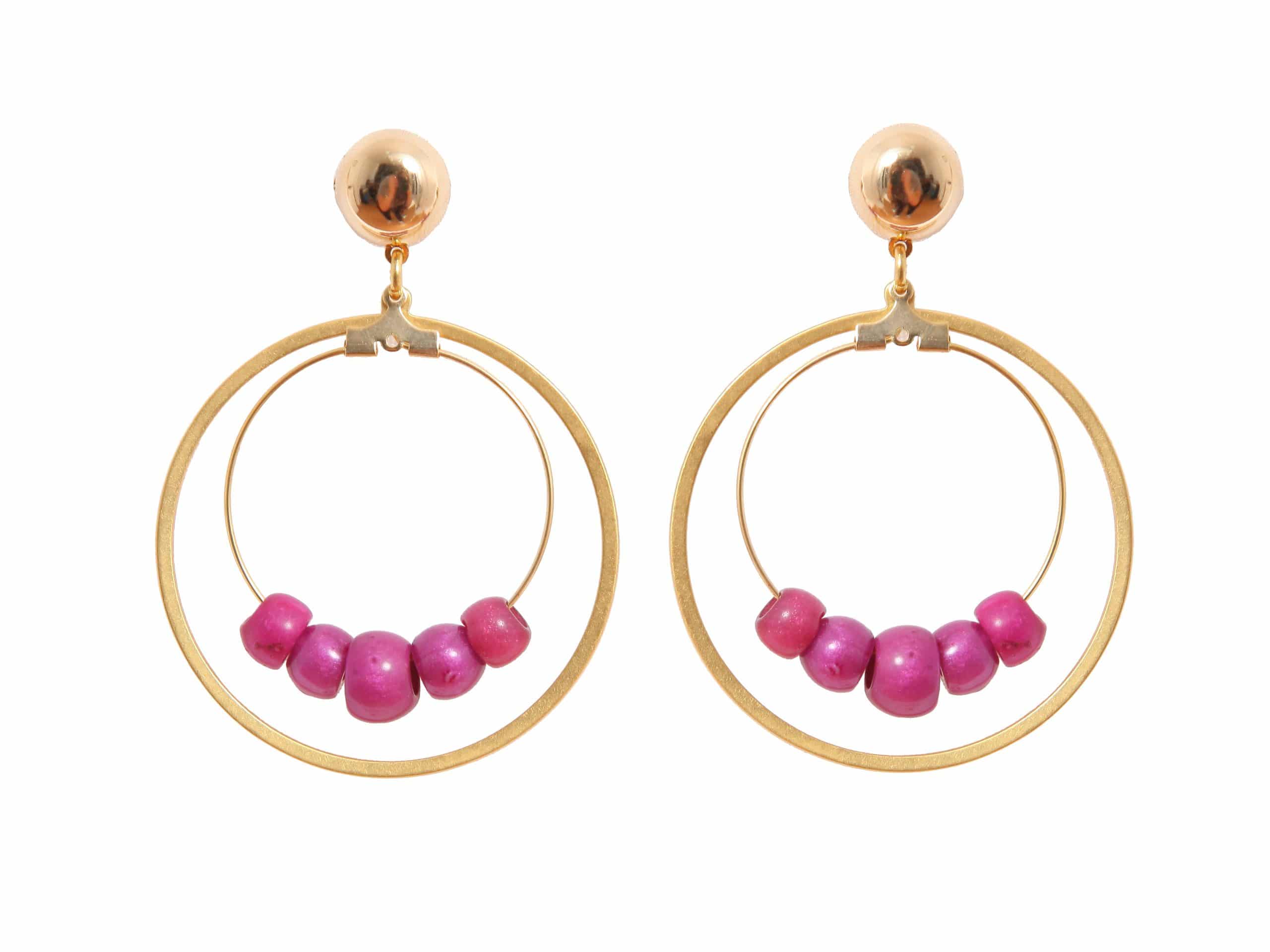 Pendiente de flamenca aro mediano piedras nácar color cardenal
