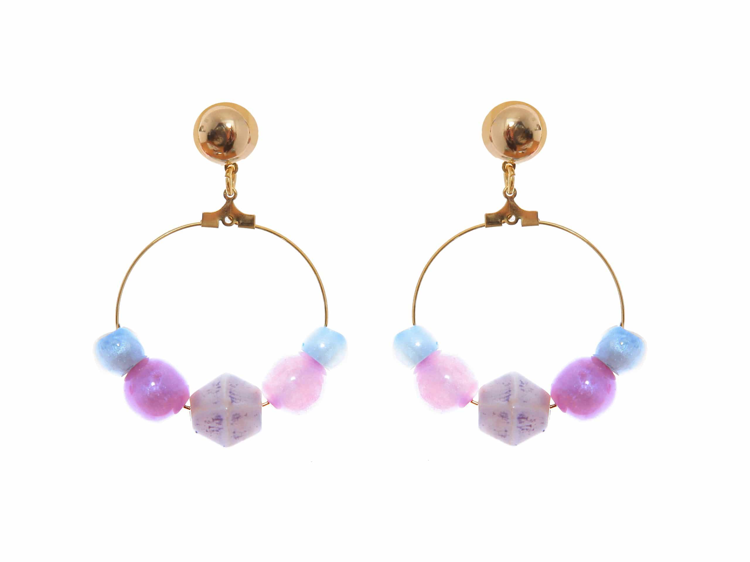 Pendiente de flamenca aro mediano piedras nácar color celeste y malva
