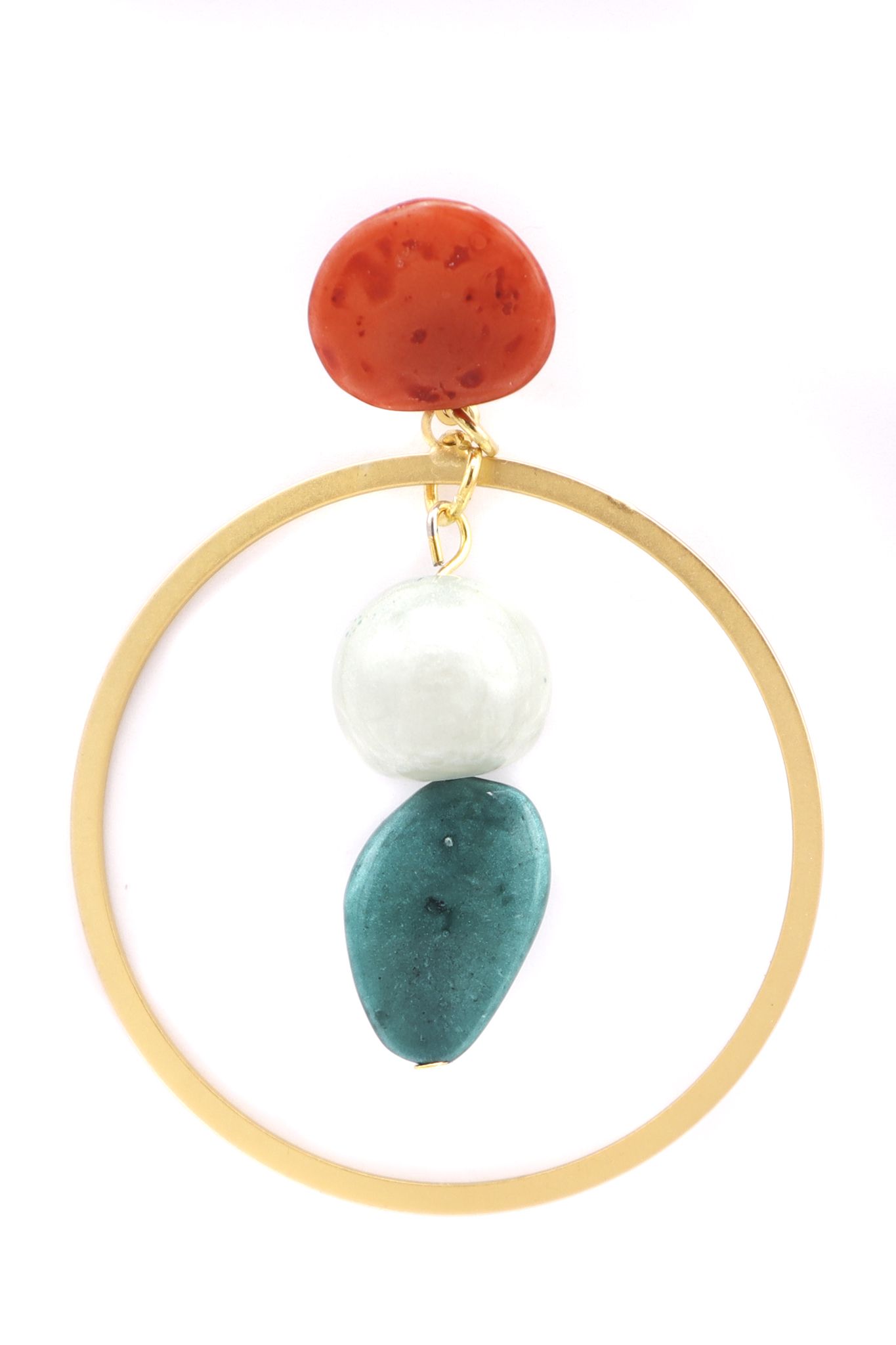 Pendiente de flamenca aro mediano piedras nácar color coral, verde agua y aguamarina