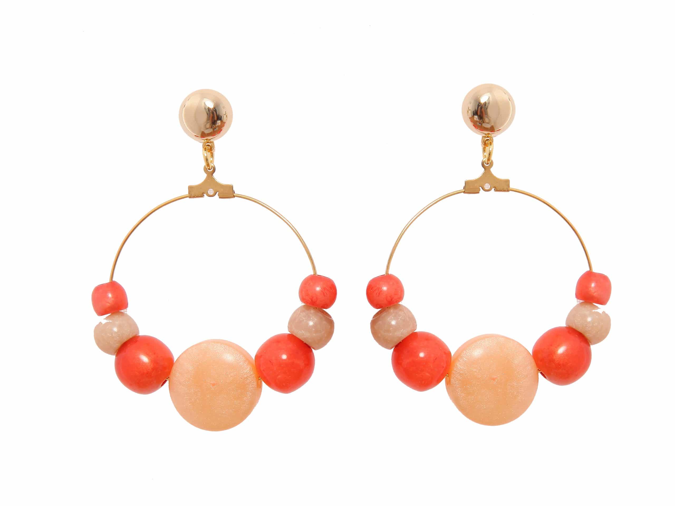 Pendiente de flamenca aro mediano piedras nácar color coral y beige