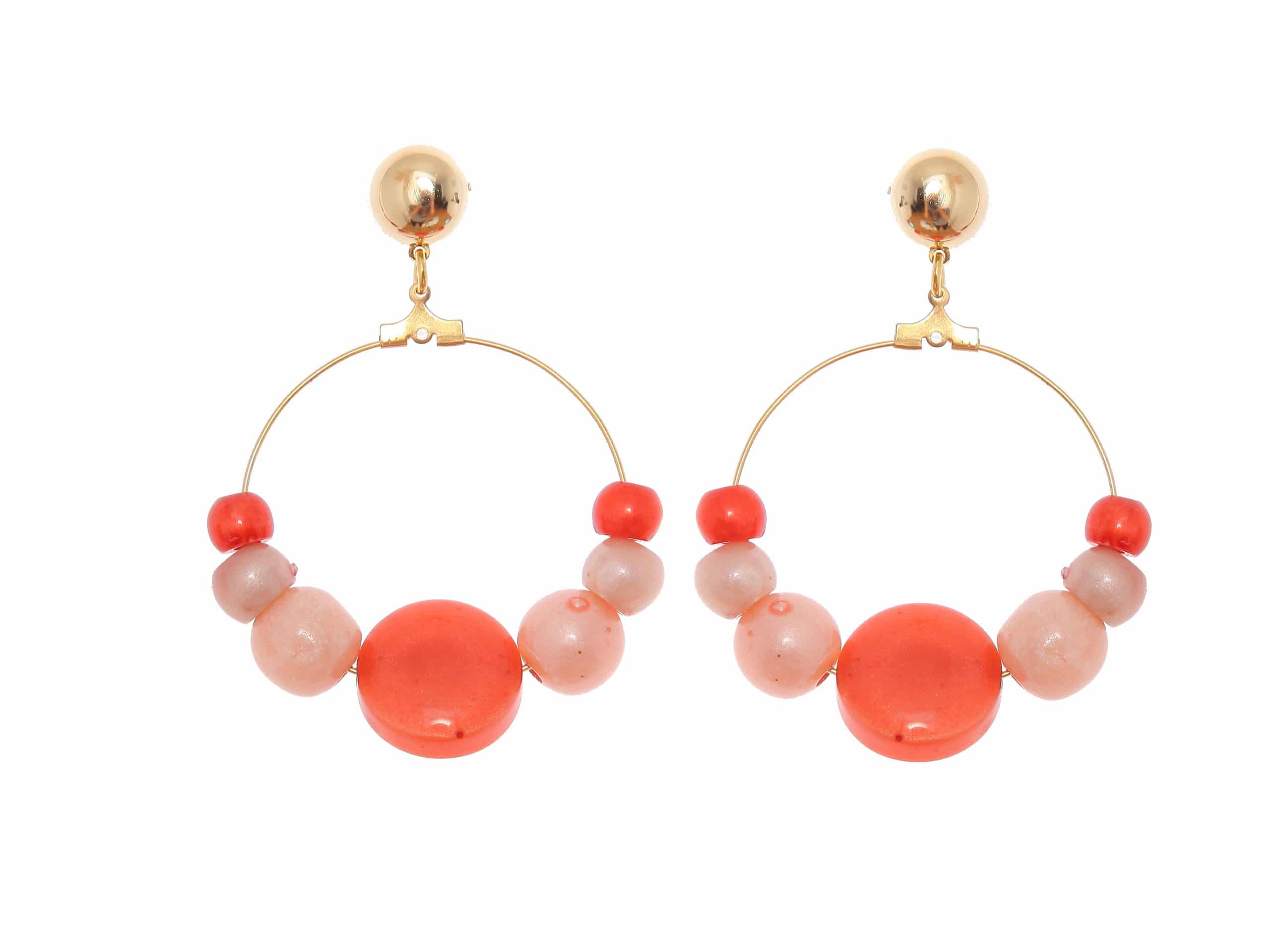 Pendiente de flamenca aro mediano piedras nácar color coral y salmón