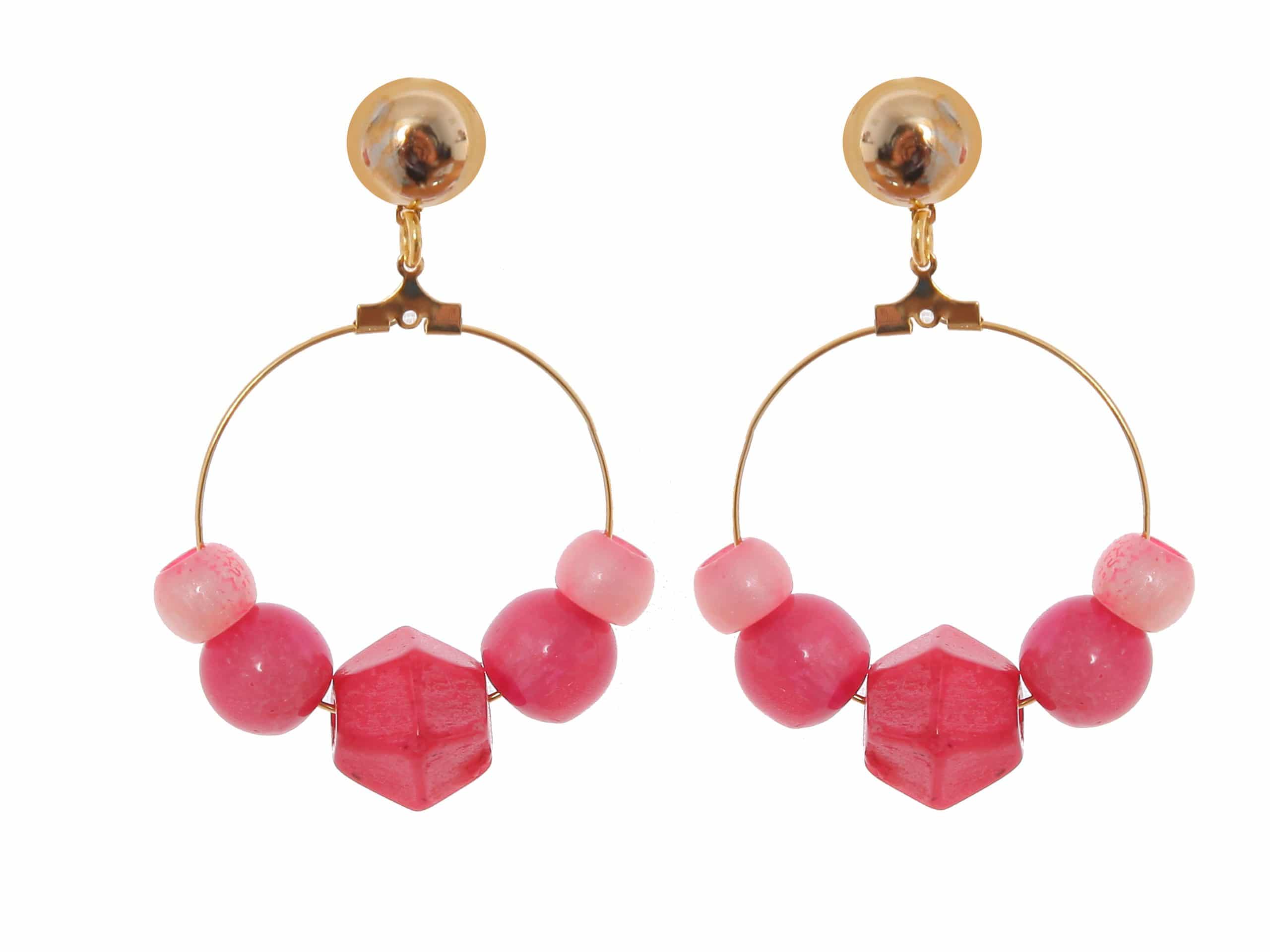Pendiente de flamenca aro mediano piedras nácar color fresa y rosa bebé