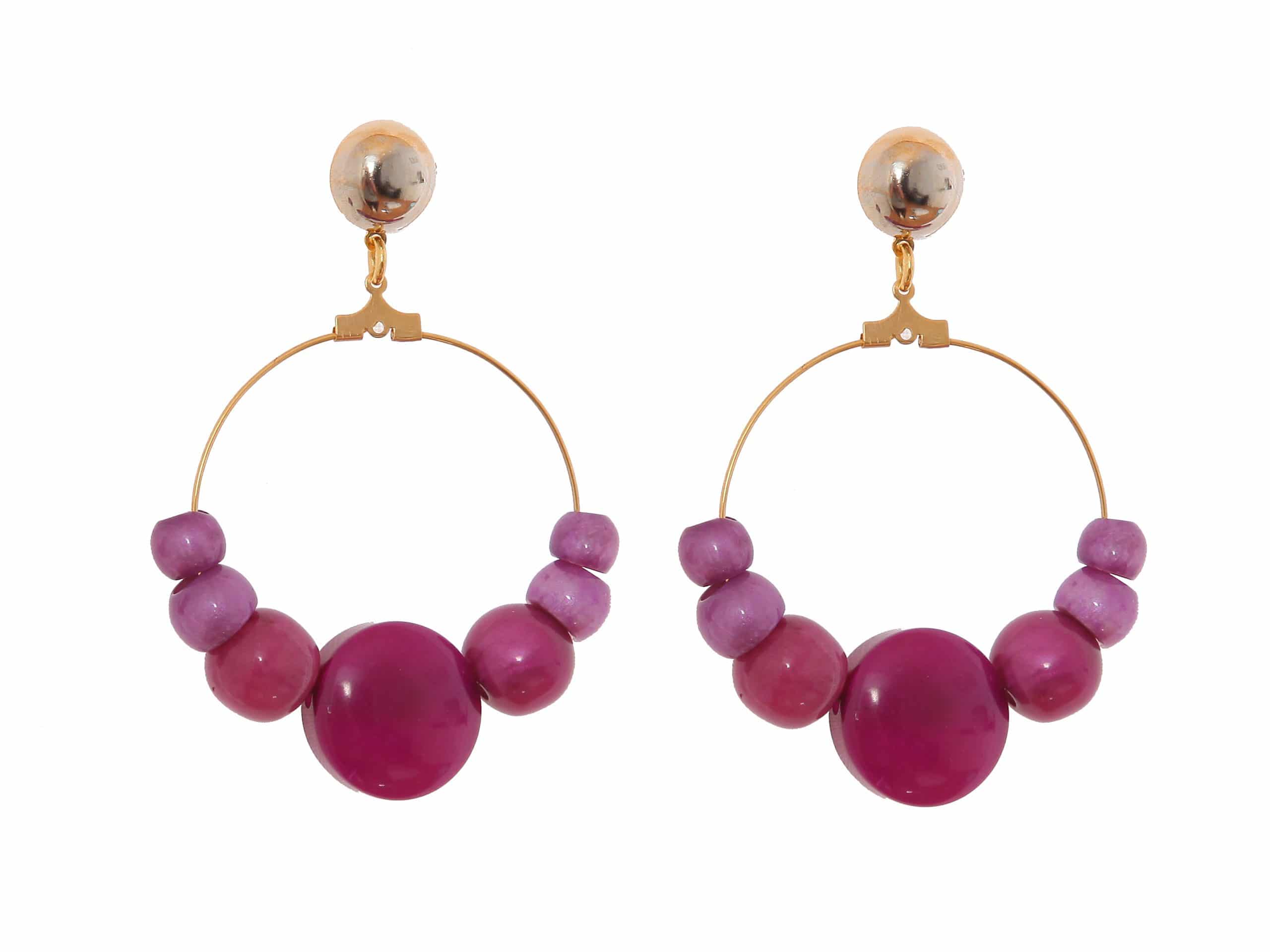 Pendiente de flamenca aro mediano piedras nácar color morado y malva