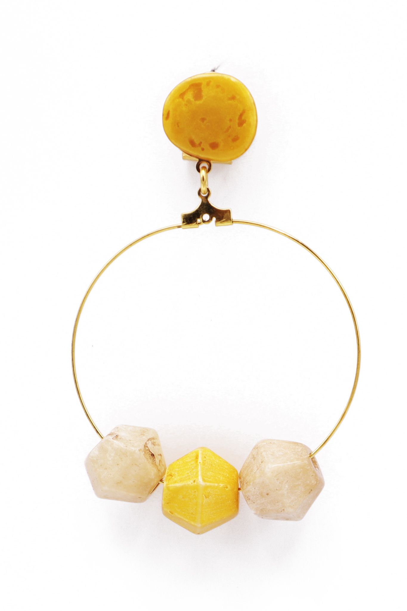 Pendiente de flamenca aro mediano piedras nácar color mostaza y beige