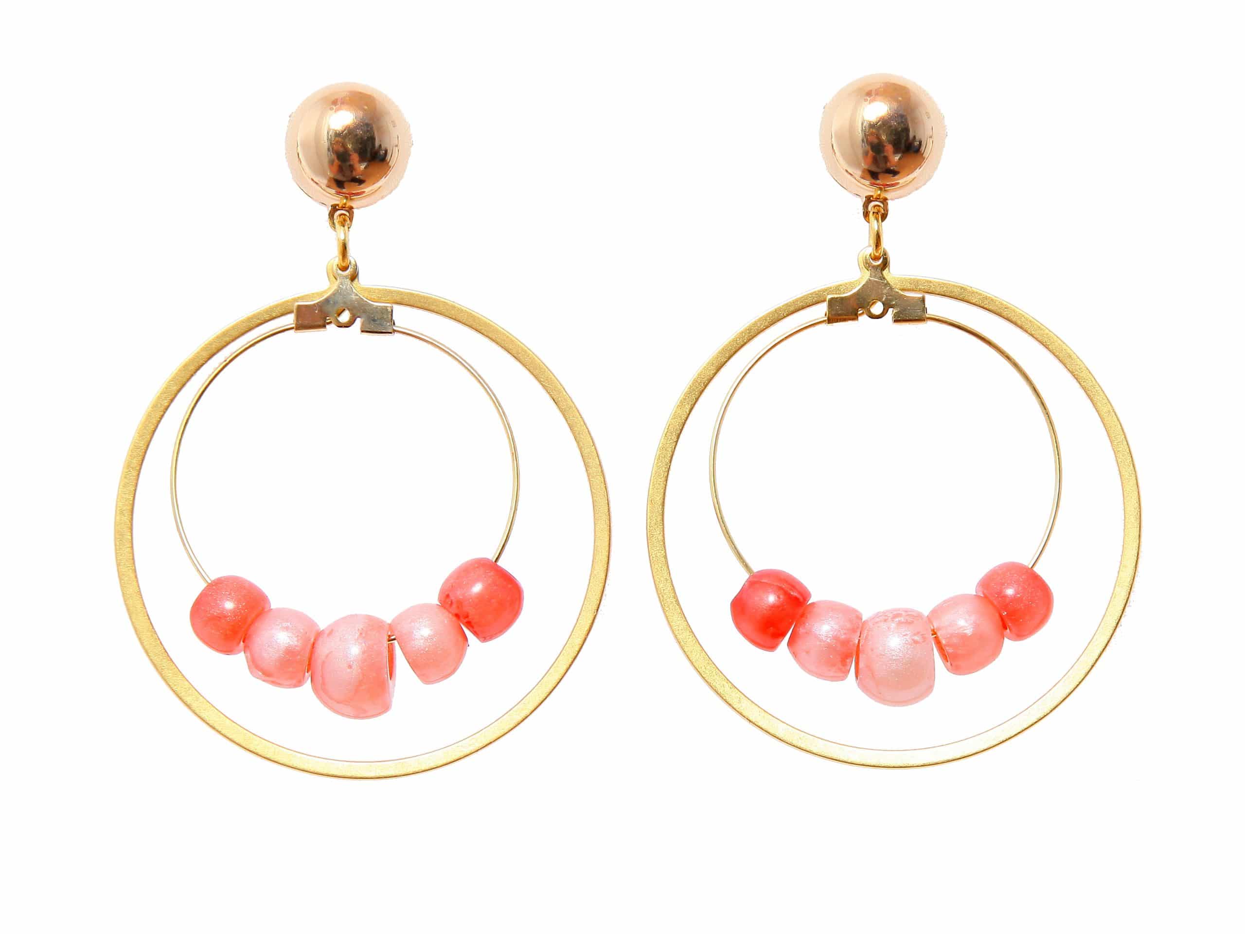 Pendiente de flamenca aro mediano piedras nácar color salmón y coral