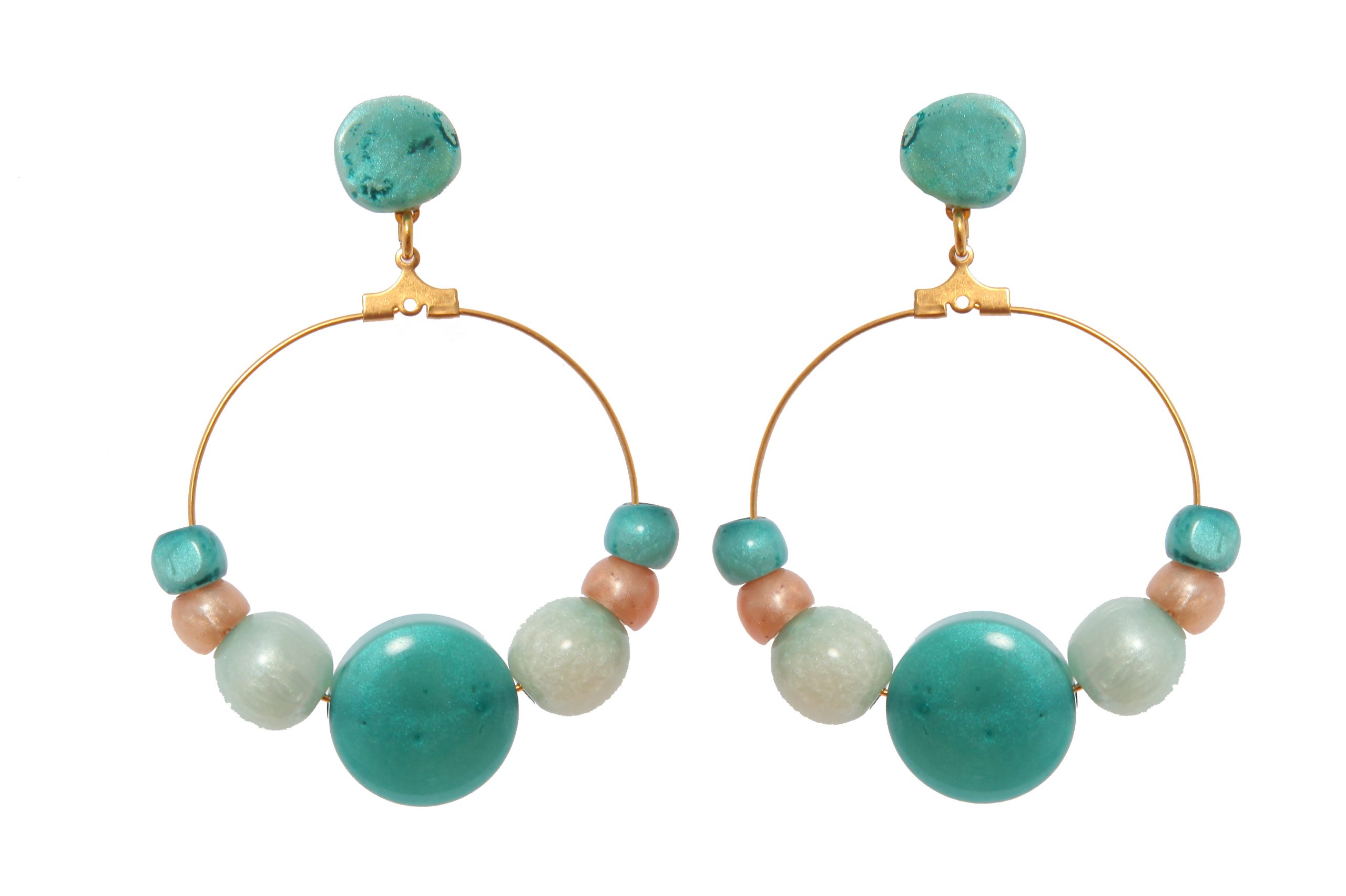 Pendiente de flamenca aro mediano piedras nácar color verde agua, turquesa y beige