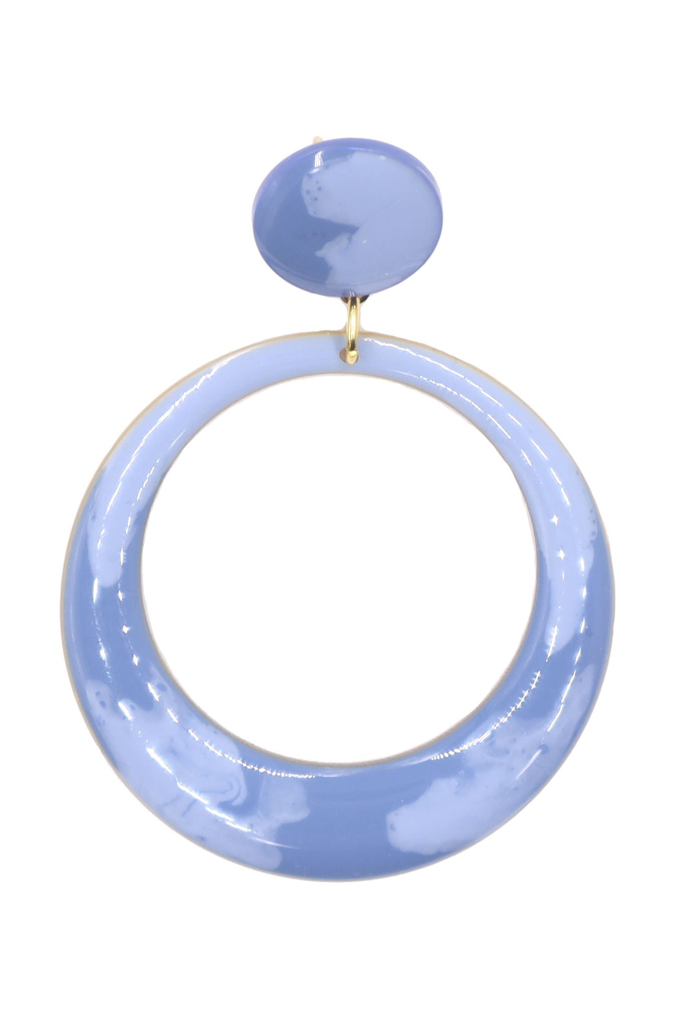 Pendiente de flamenca aro pequeño esmaltado acuarela color azul azafata degradado. Cierre omega. Medida: 50 mm (sin cabezal). Fabricado artesanalmente en Sevilla.