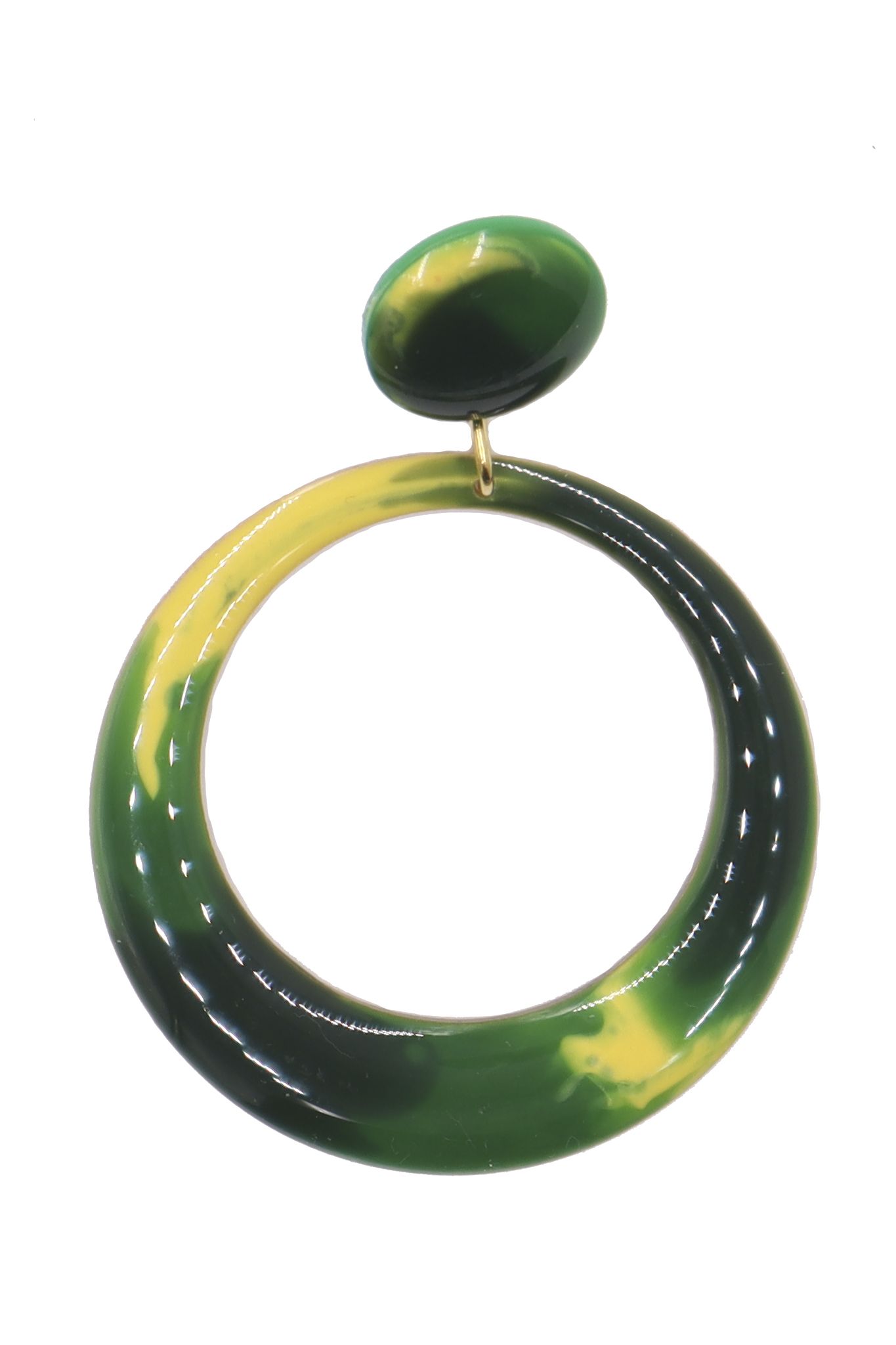 Pendiente de flamenca aro pequeño esmaltado acuarela color verde botella y amarillo degradado. Cierre a presión. Medida: 50 mm (sin cabezal). Fabricado artesanalmente en Sevilla.