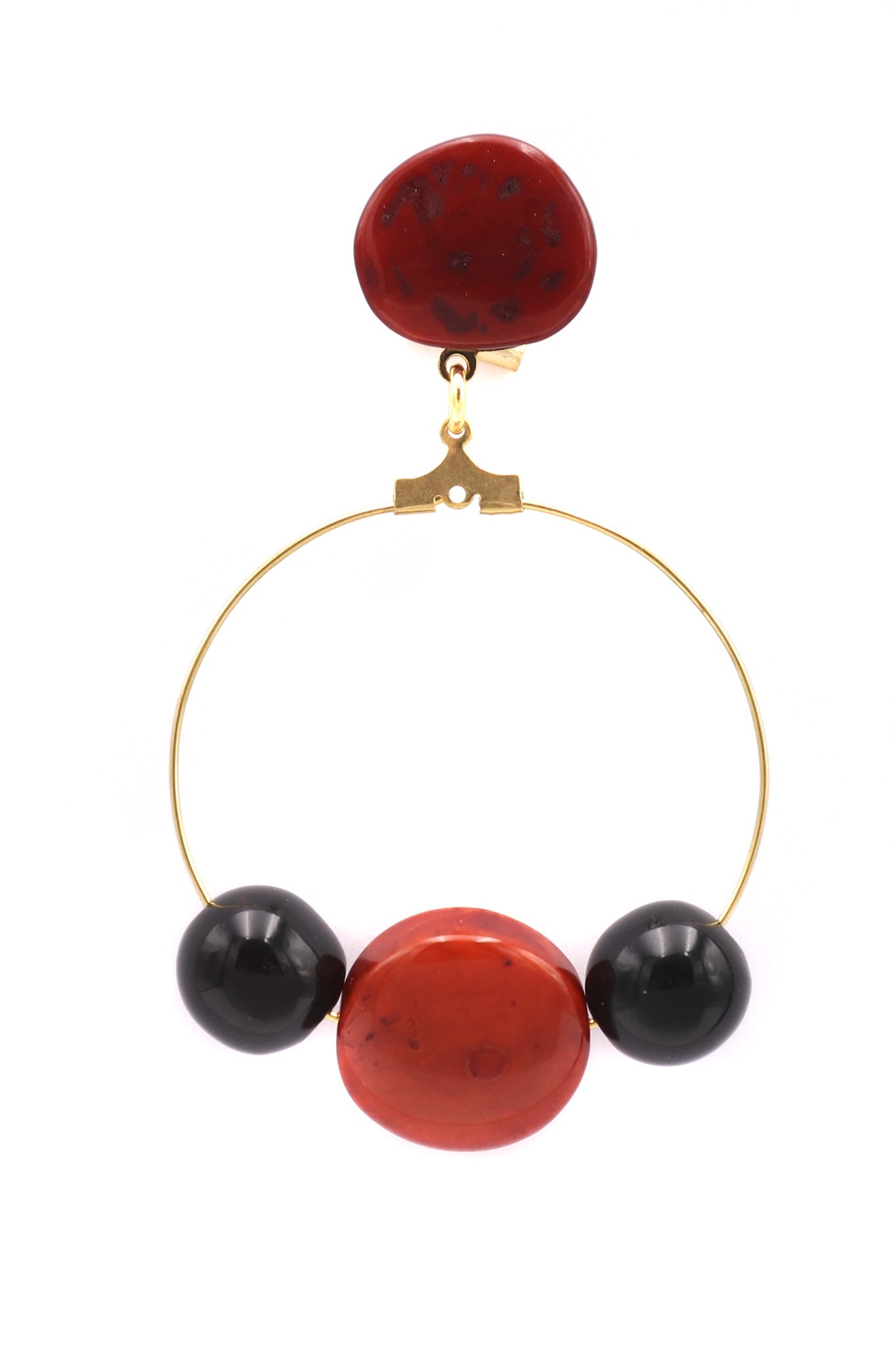 Pendiente de flamenca aro pequeño piedras nácar acuarela color rojo y negro