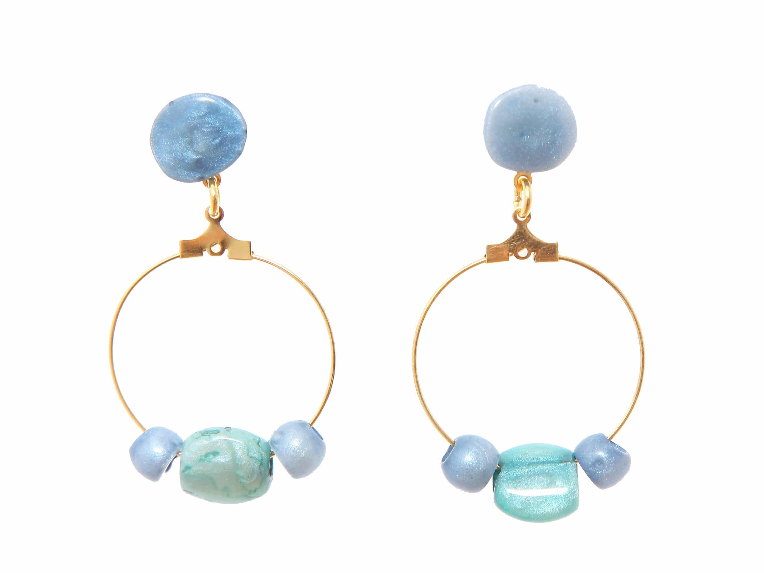 Pendiente de flamenca aro pequeño piedras nácar color azul azafata y verde agua