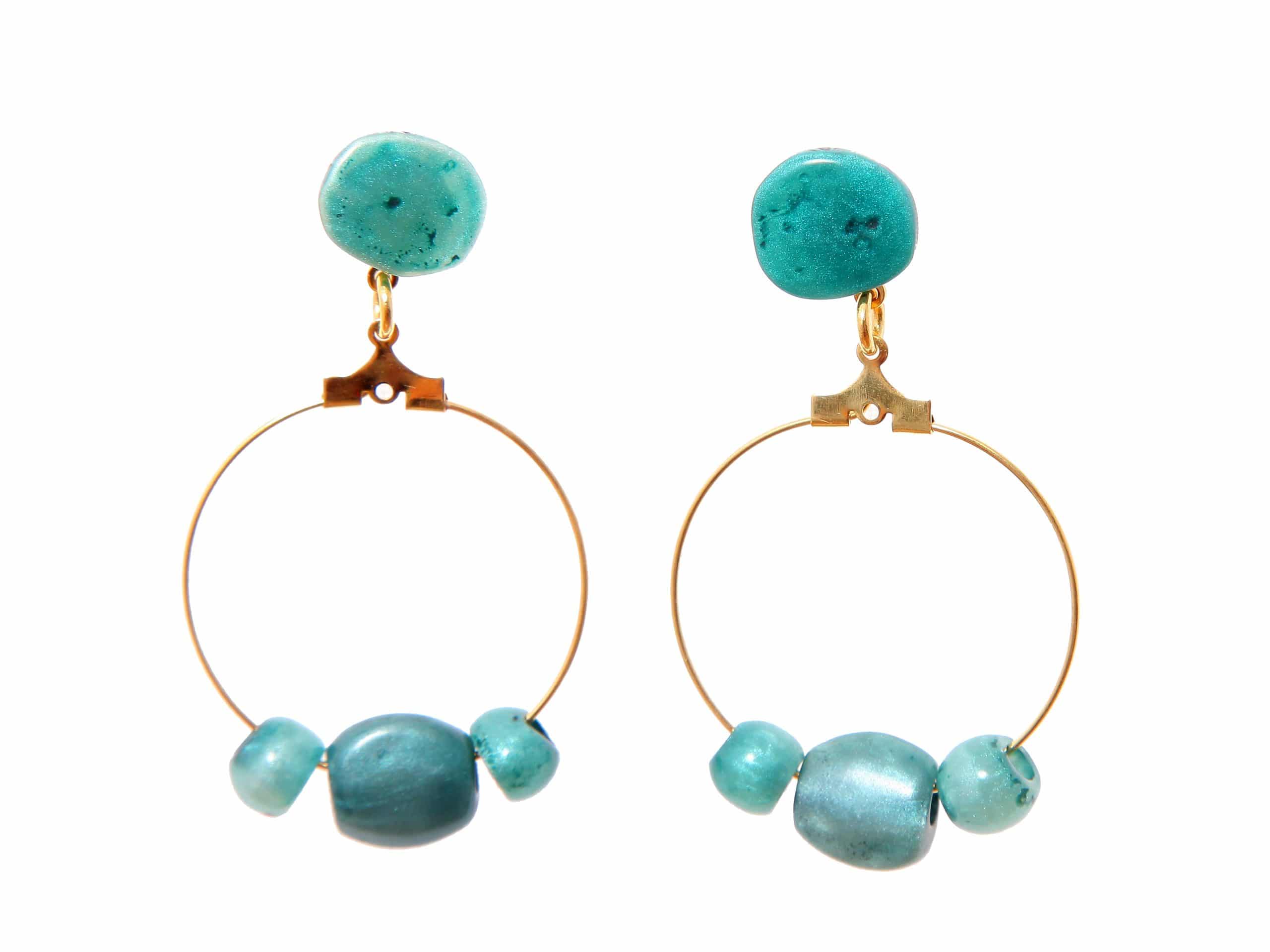 Pendiente de flamenca aro pequeño piedras nácar color azul turquesa