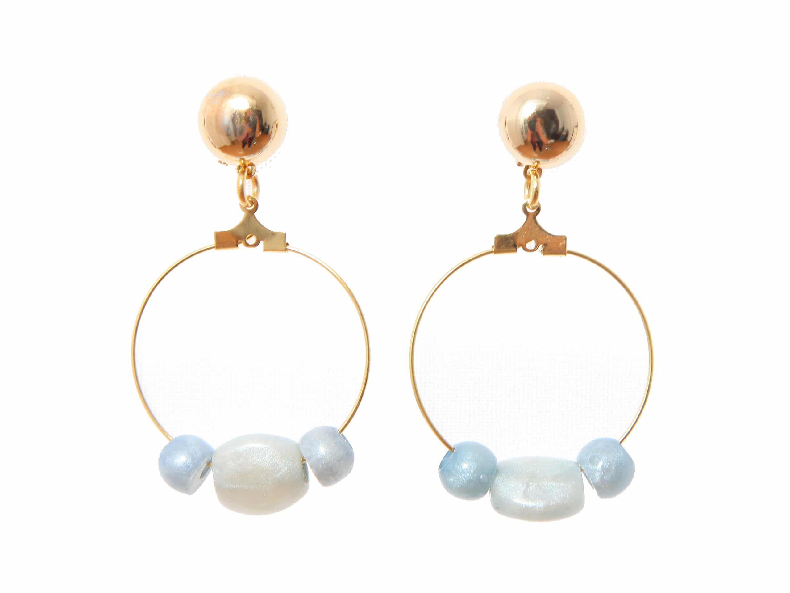 Pendiente de flamenca aro pequeño piedras nácar color celeste