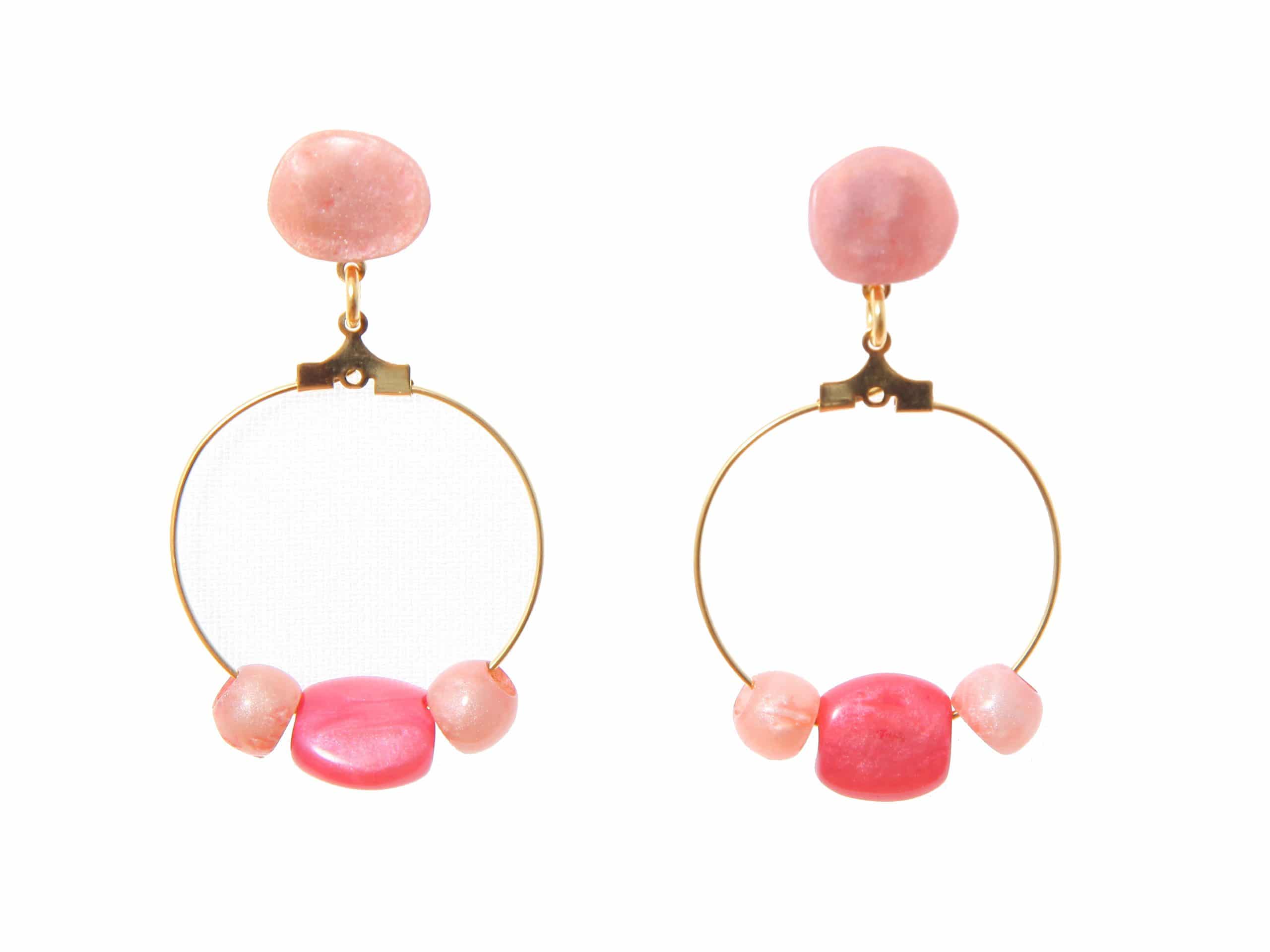Pendiente de flamenca aro pequeño piedras nácar color fresa y rosa bebé