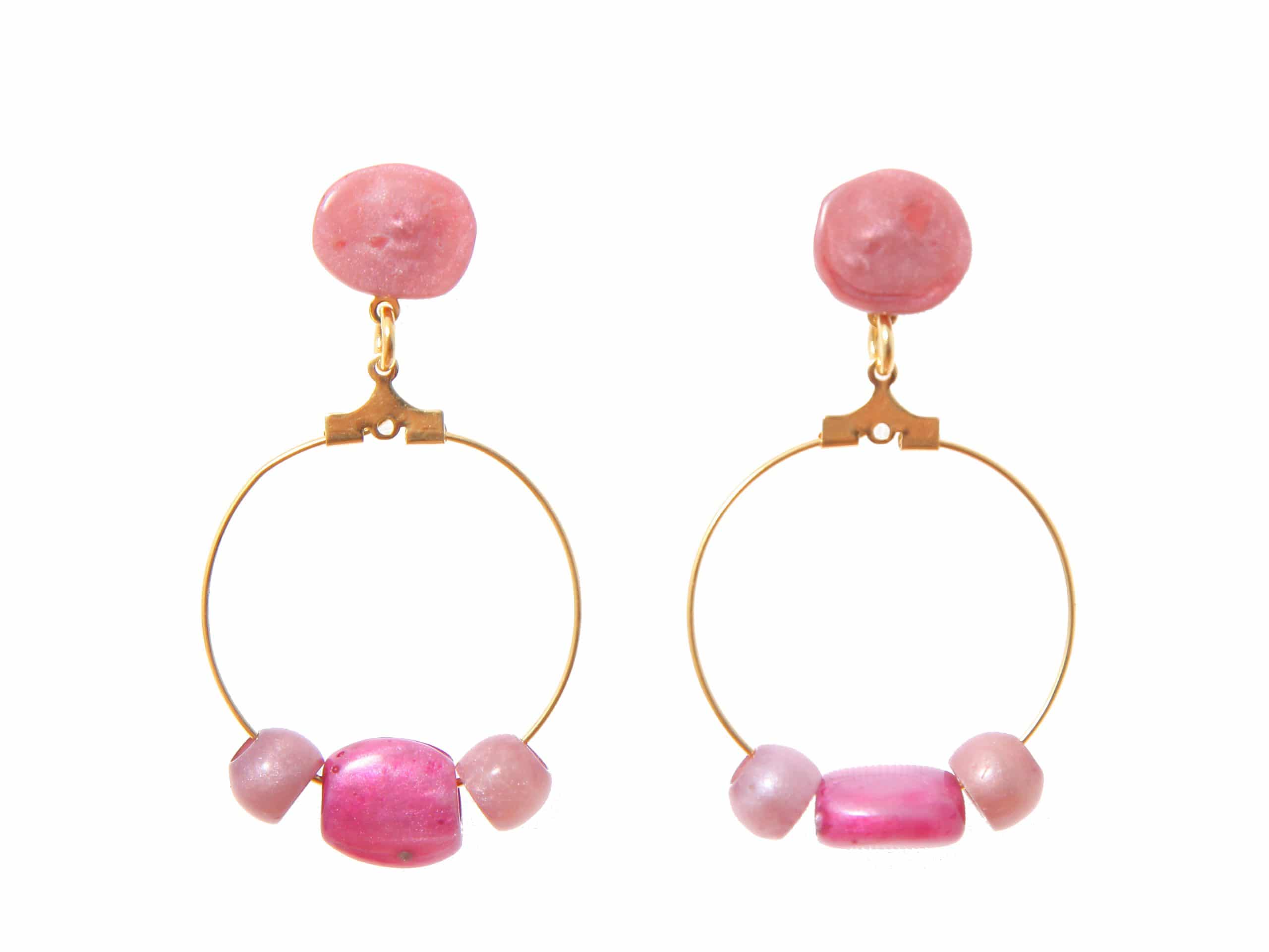 Pendiente de flamenca aro pequeño piedras nácar color malva y rosa