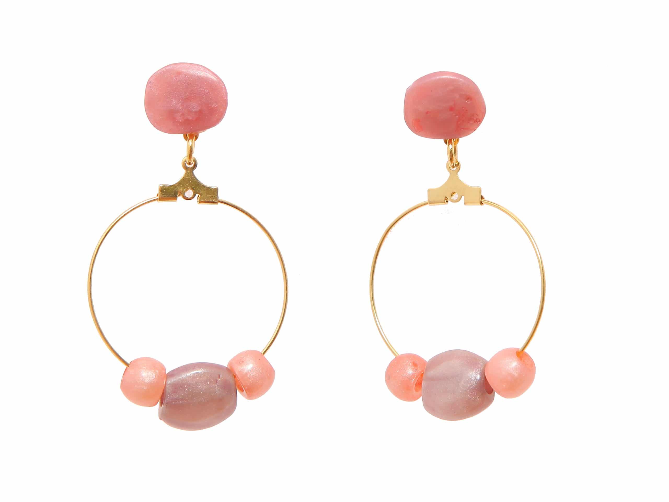 Pendiente de flamenca aro pequeño piedras nácar color maquillaje y salmón
