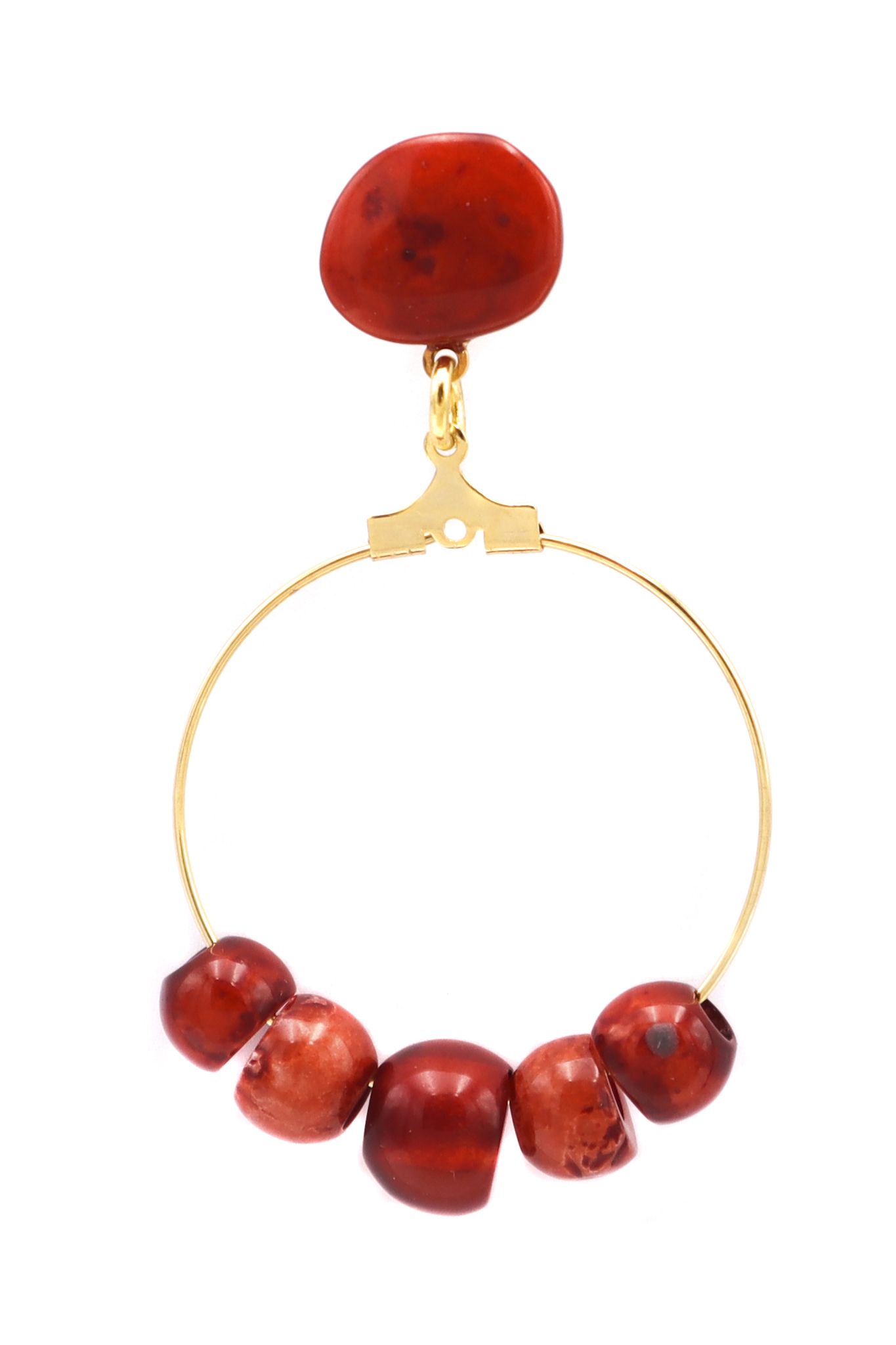 Pendiente de flamenca aro pequeño piedras nácar color rojo