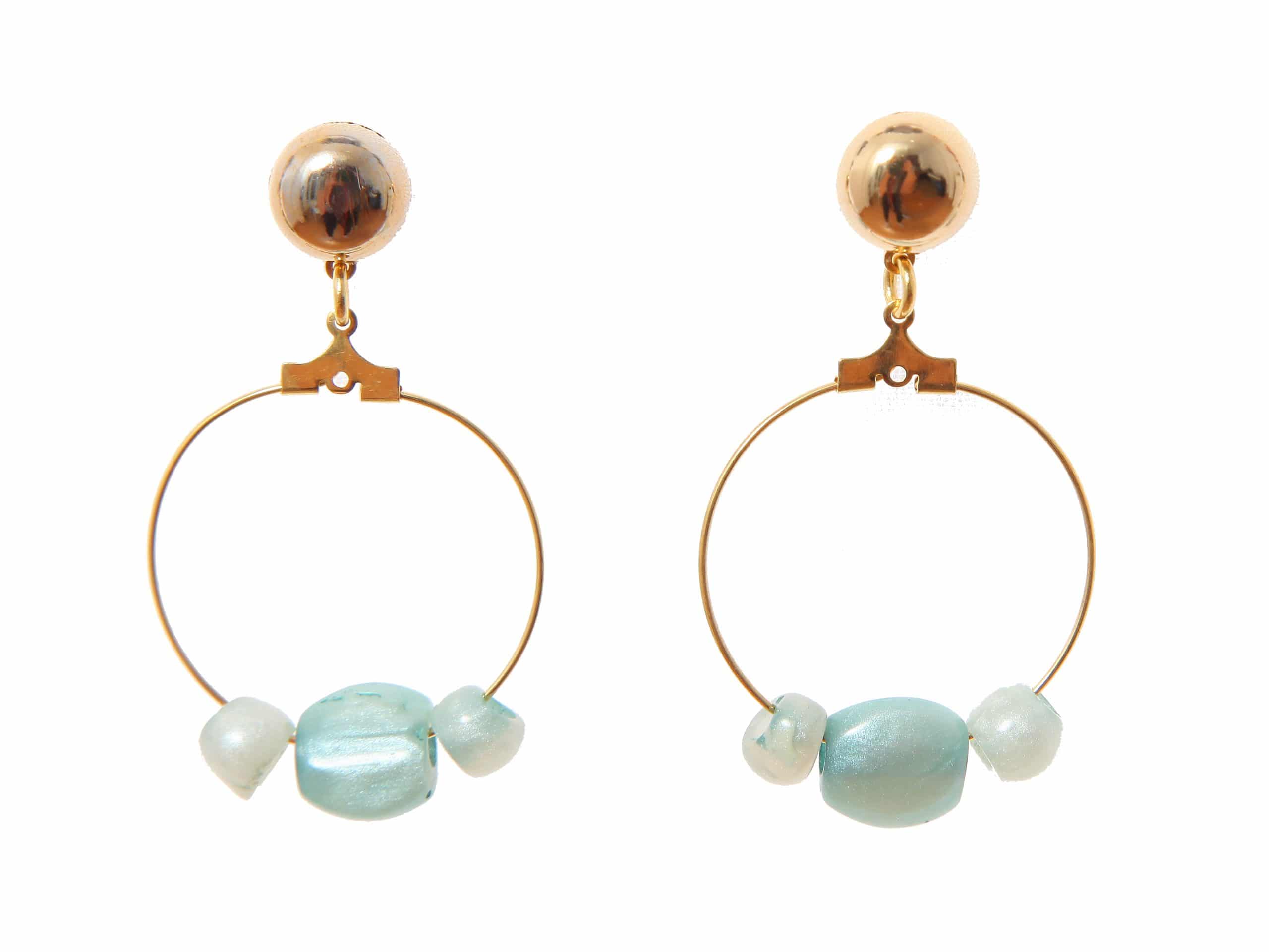 Pendiente de flamenca aro pequeño piedras nácar color verde agua