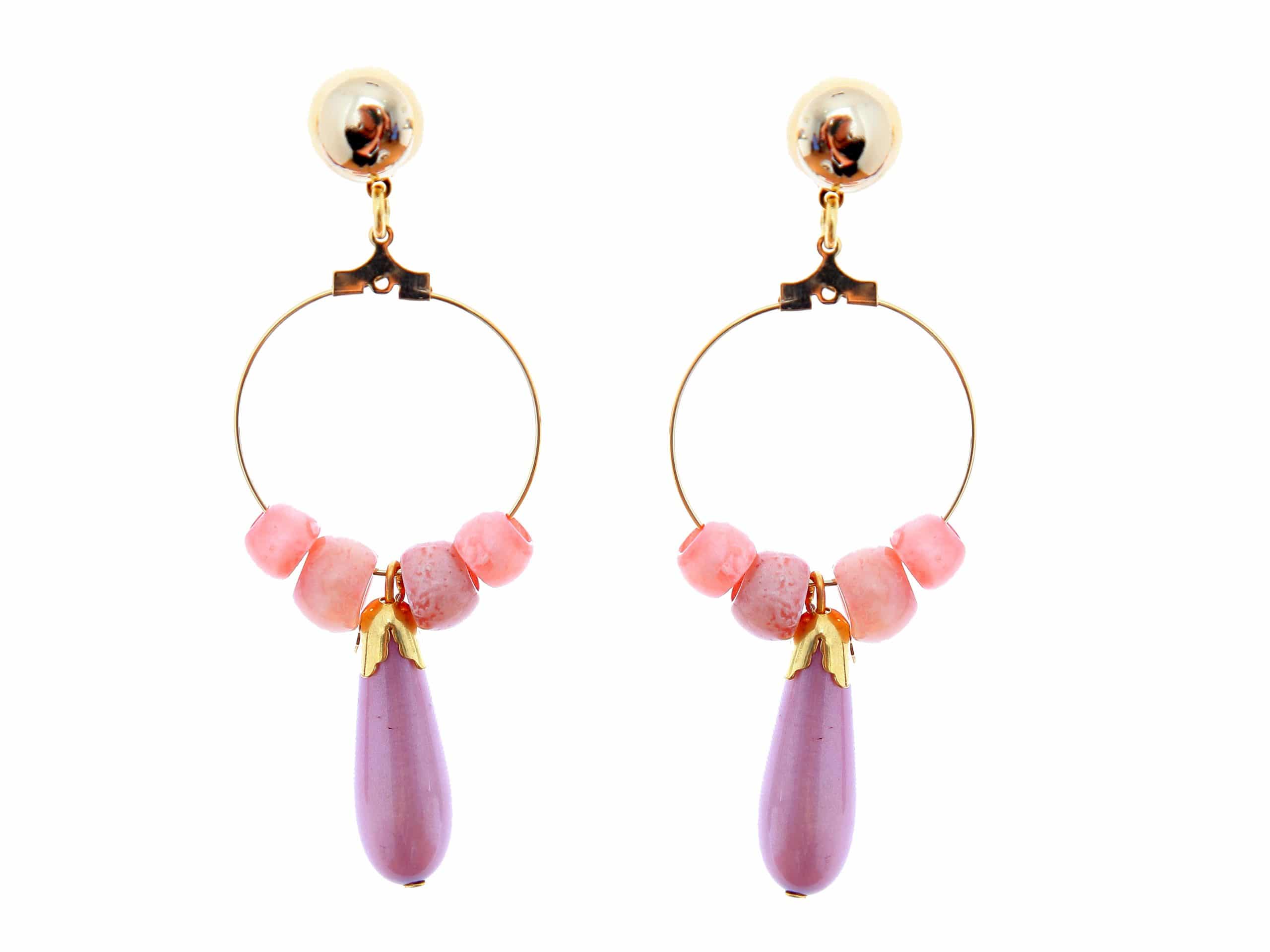 Pendiente de flamenca aro y lágrima mediano piedras nácar color malva y salmón