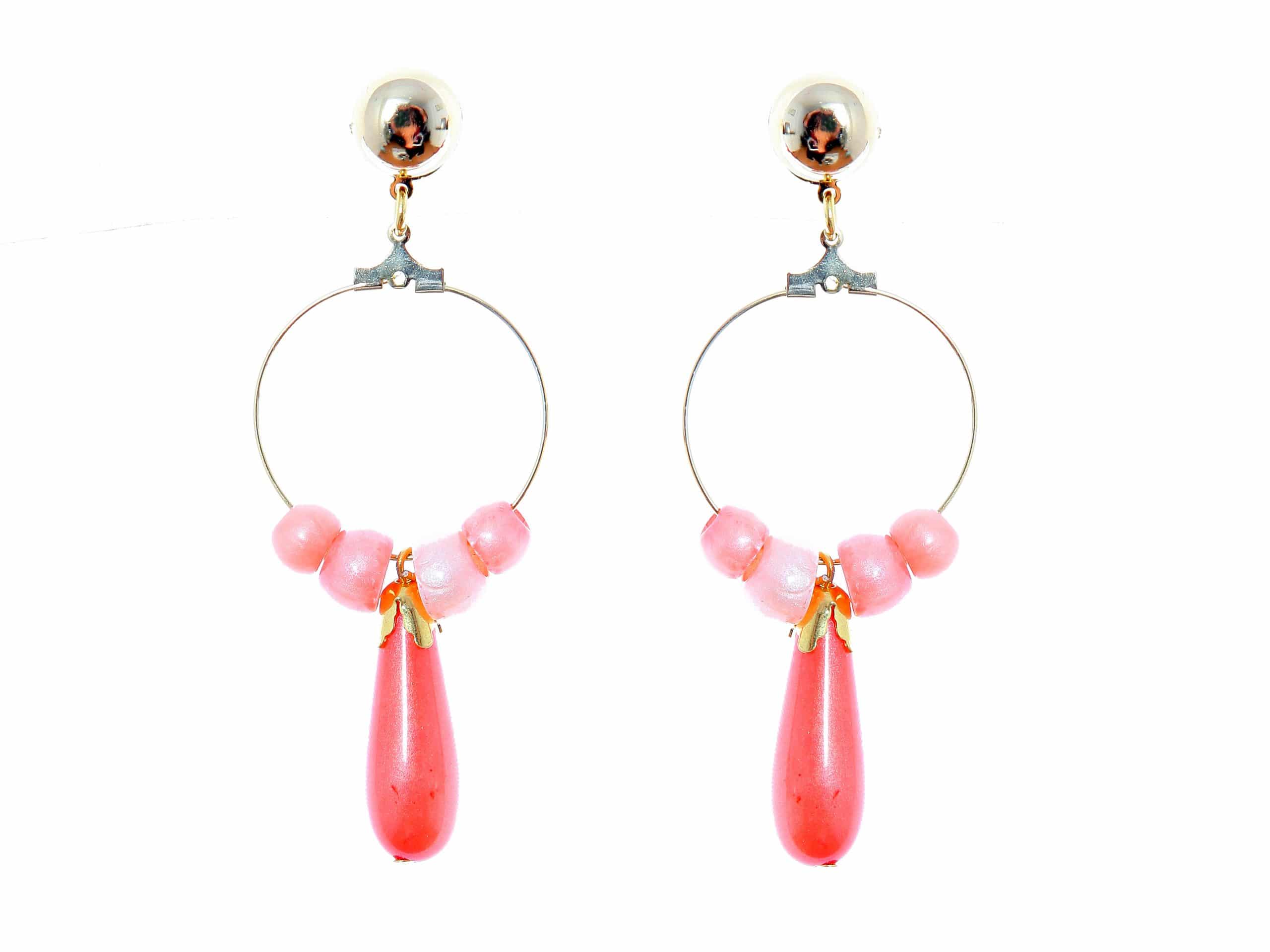Pendiente de flamenca aro y lágrima mediano piedras nácar color salmón