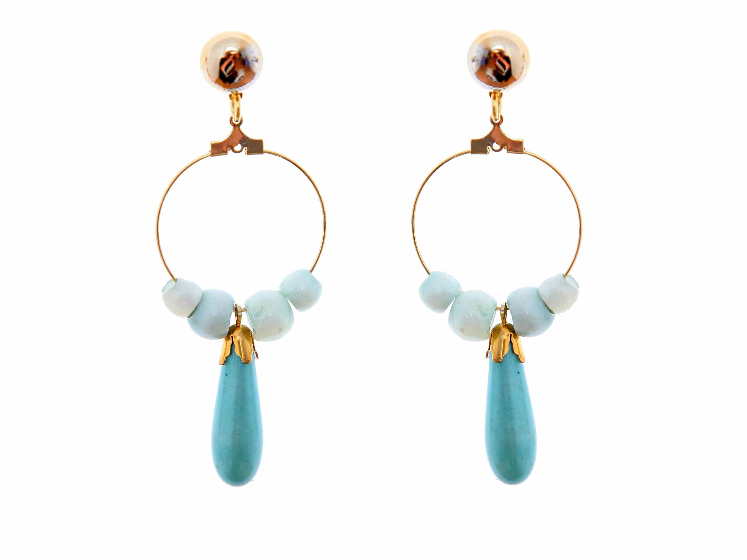 Pendiente de flamenca aro y lágrima mediano piedras nácar color verde aguamarina