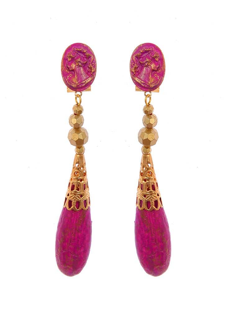 Pendiente de flamenca camafeo buganvilla con reflejos oro
