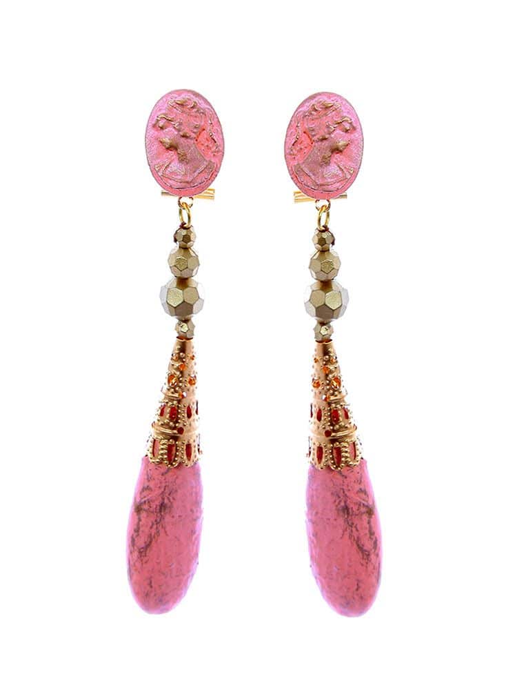 Pendiente de flamenca camafeo rosa chicle con reflejos oro