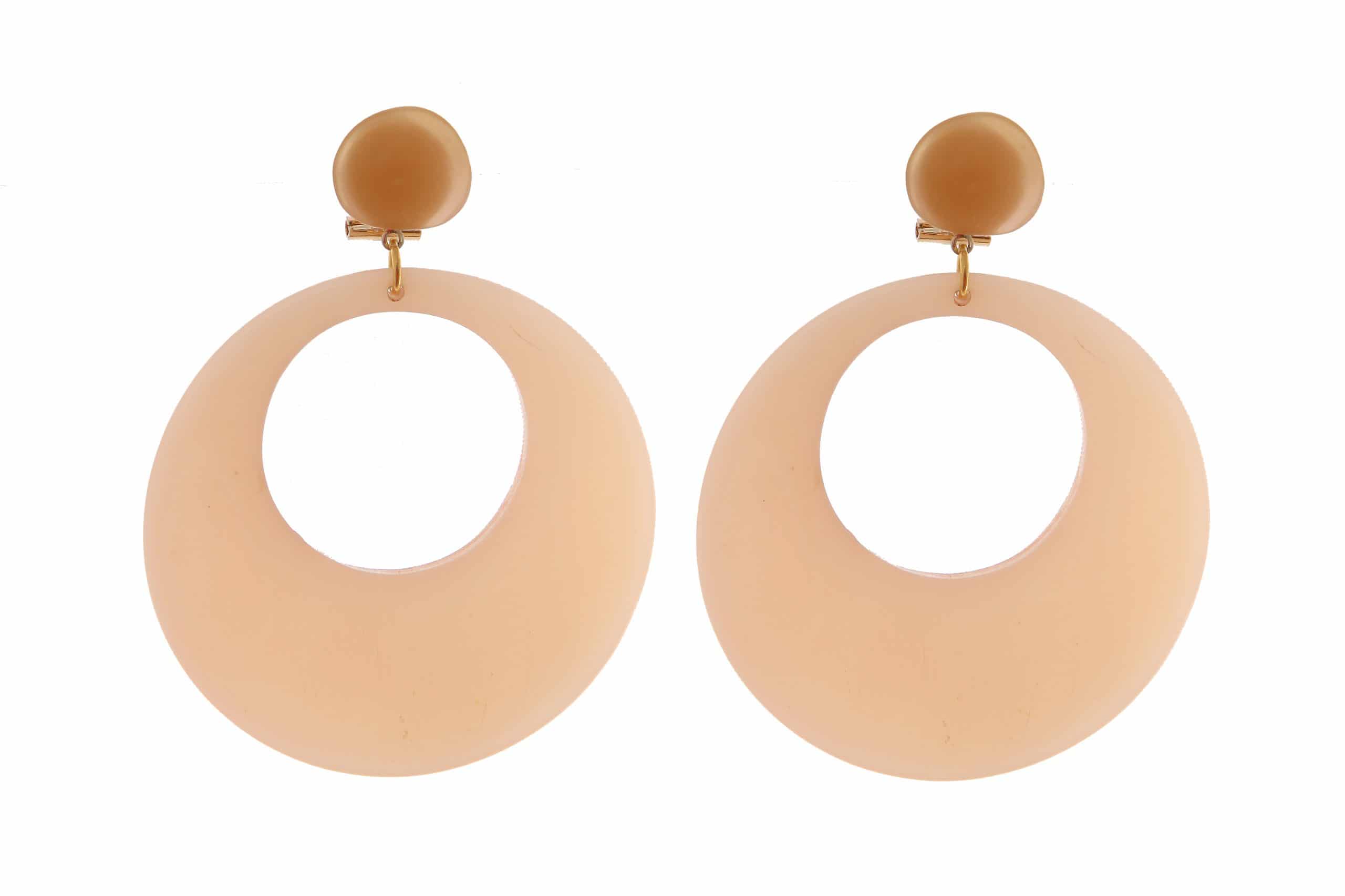 Pendiente de flamenca de resina cristal de color Beige . Cierre omega. Diámetro 65mm (sin cabezal). Fabricado artesanalmente en la provincia de Sevilla.