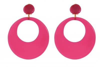Pendiente de flamenca de aro mediano de resina cristal color Buganvilla