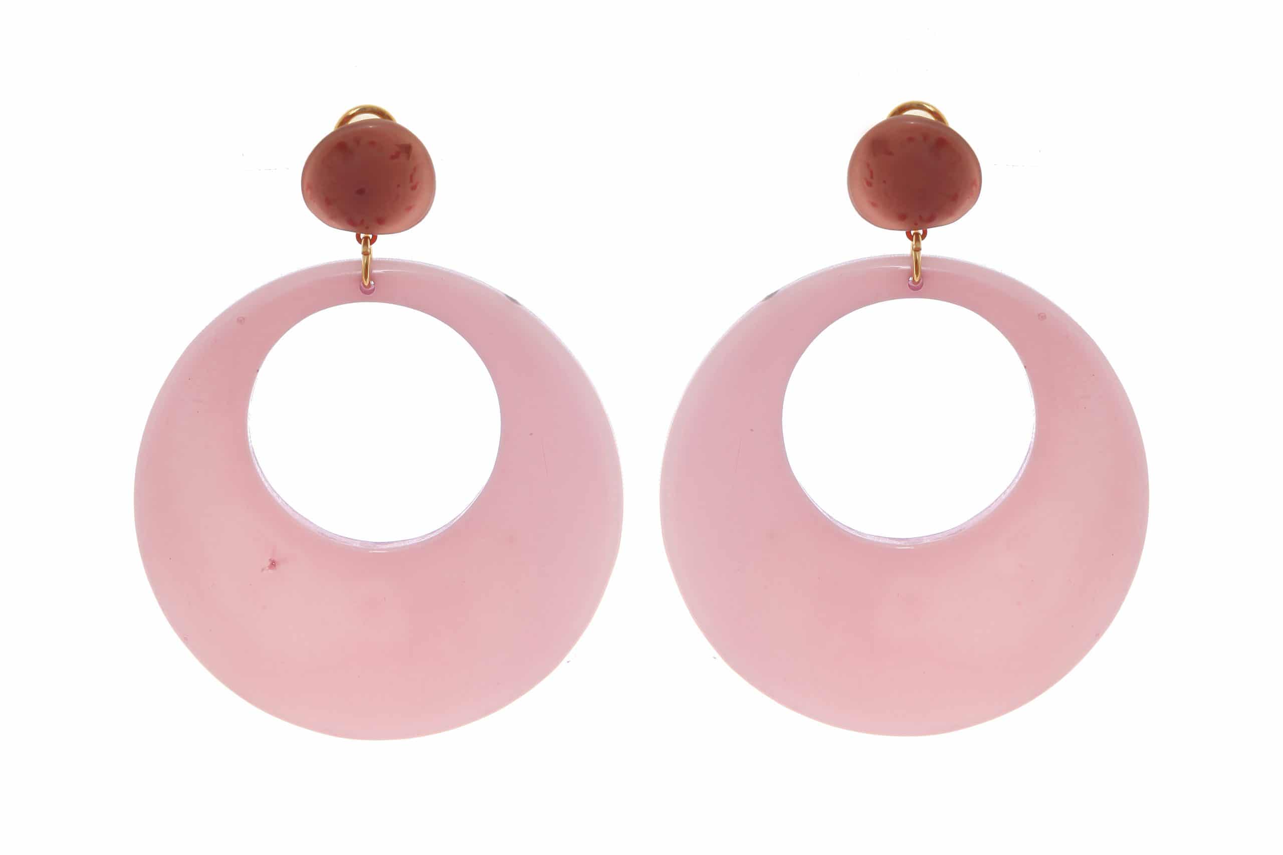 Pendiente de flamenca de resina cristal de color Maquillaje. Cierre omega. Diámetro 65mm (sin cabezal). Fabricado artesanalmente en la provincia de Sevilla.