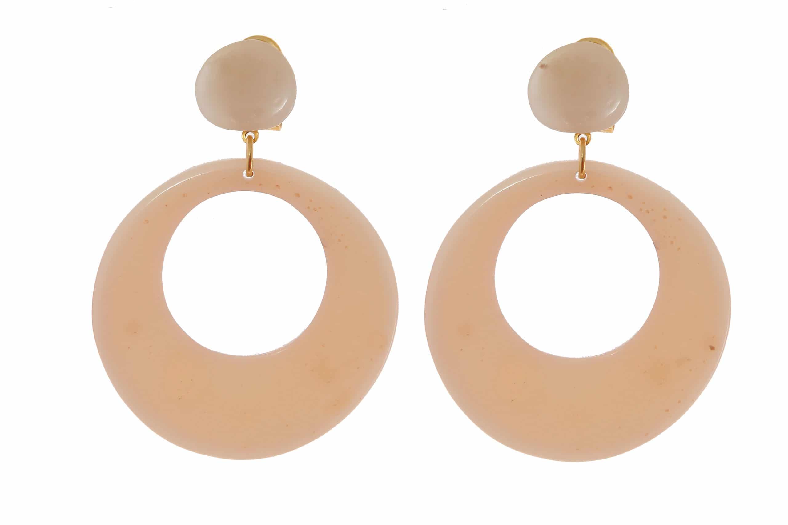 Pendiente de flamenca de resina cristal de color Marfil. Cierre omega. Diámetro 53mm (sin cabezal). Fabricado artesanalmente en la provincia de Sevilla.